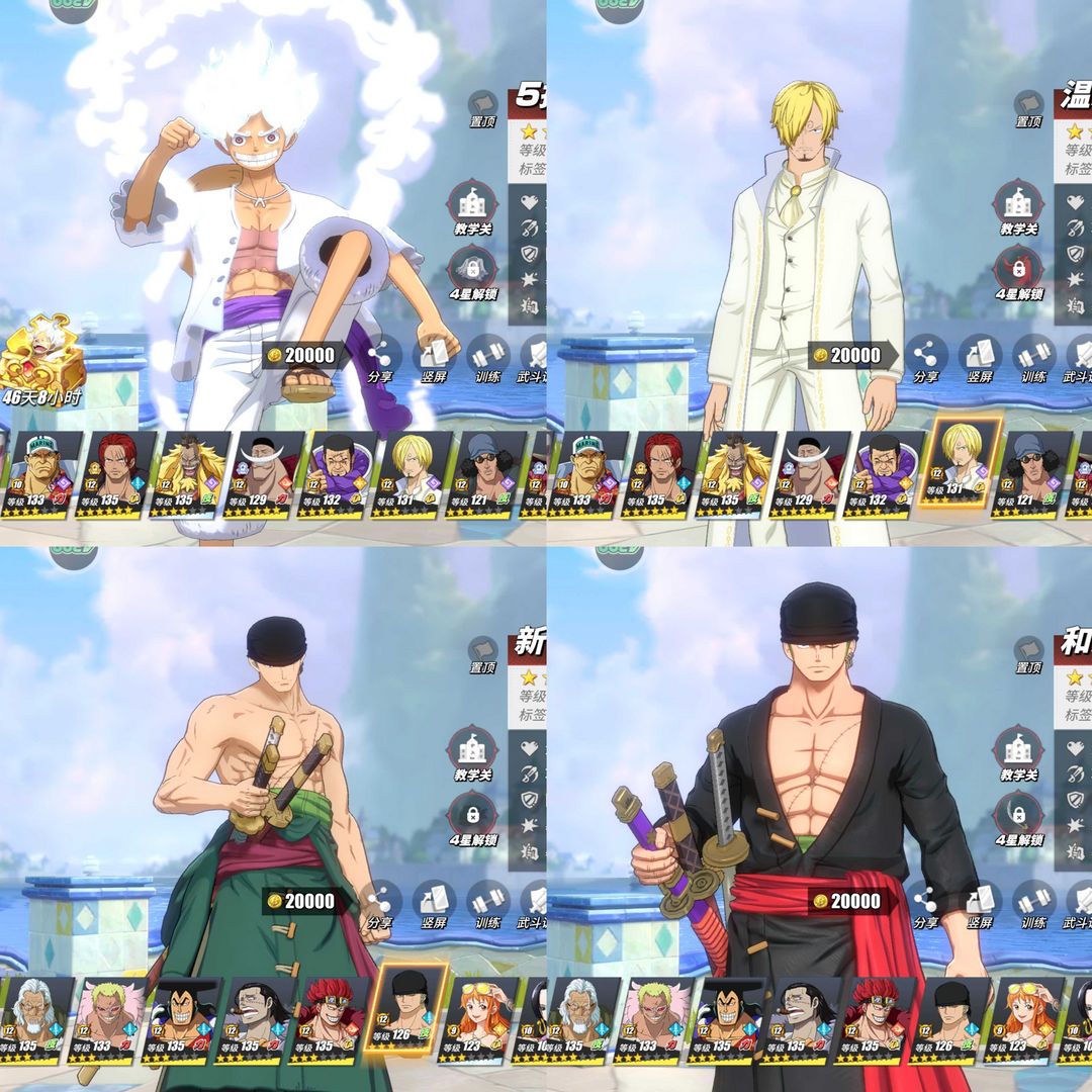 4399版本!12传奇76传奇尼卡路飞婚礼山治黑色玛丽亚路奇老沙鬼岛路飞青年白胡子青年雷利4典藏