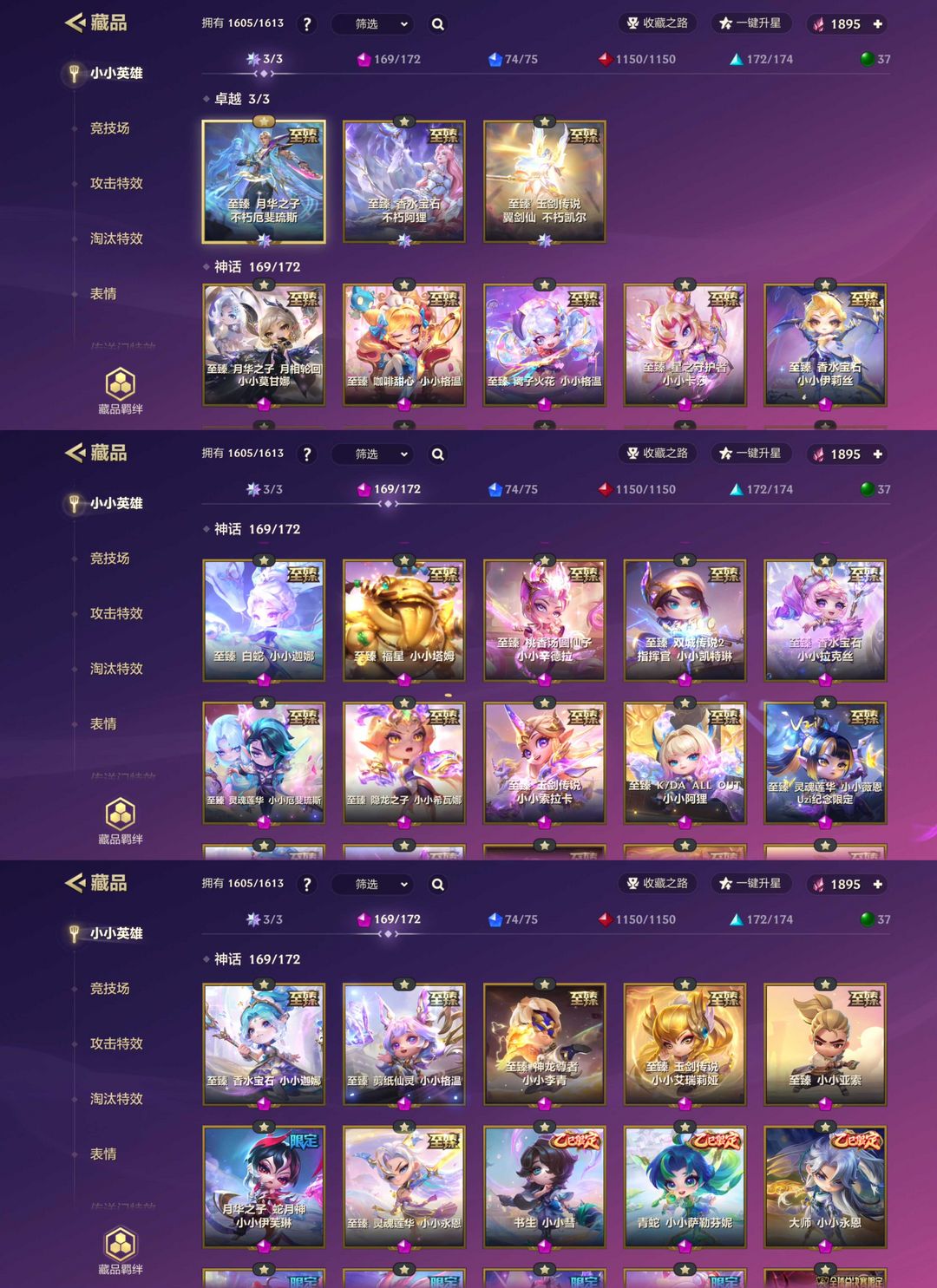 172神话⚡️3卓越❤️至臻不朽亚飞⭐️至臻莫甘娜⭐️月宴⭐️满特效满棋盘⭐️新出必秒