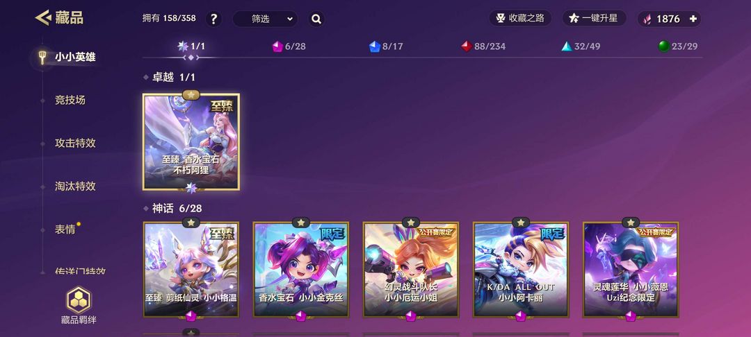 有至臻阿狸和格温加其他神话小小英雄+神话级棋盘和神话级击败特效,可随意排位
