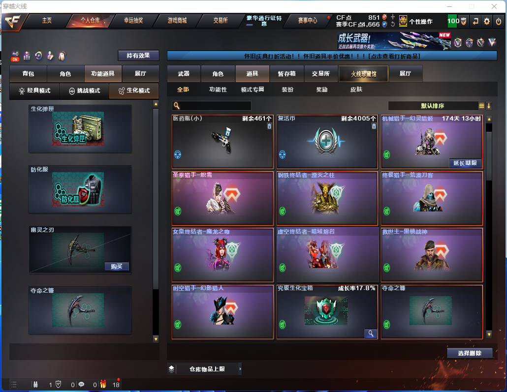 生化酒店幻影猎人✨9个猎手✨斯泰尔蝴蝶毒蜂✨生化6盘6烈✨四防生化背包✨幻神可排位✨满榴弹无炽芒蝶刃