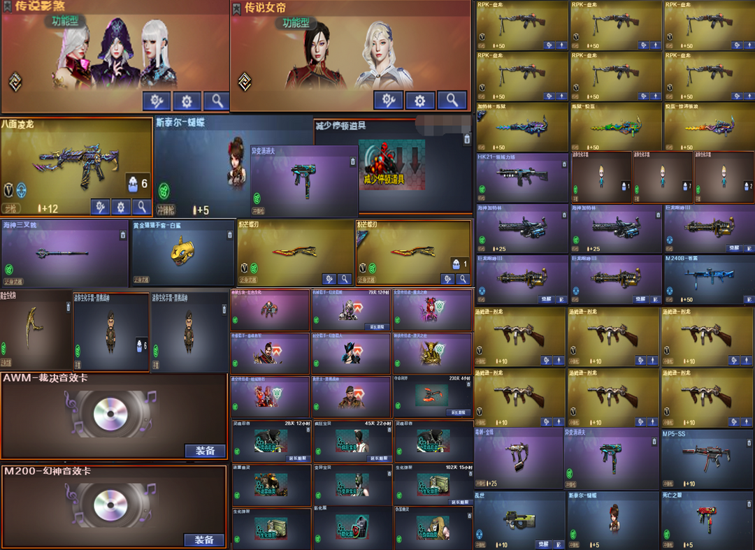 装备描述:影煞女帝电竞之星幻神裁决音效卡八面凌龙②炽芒带皮❤️宙斯卡弹匣全猎皮镇魔者❤️6盘烈蝴蝶清道夫鲨臂