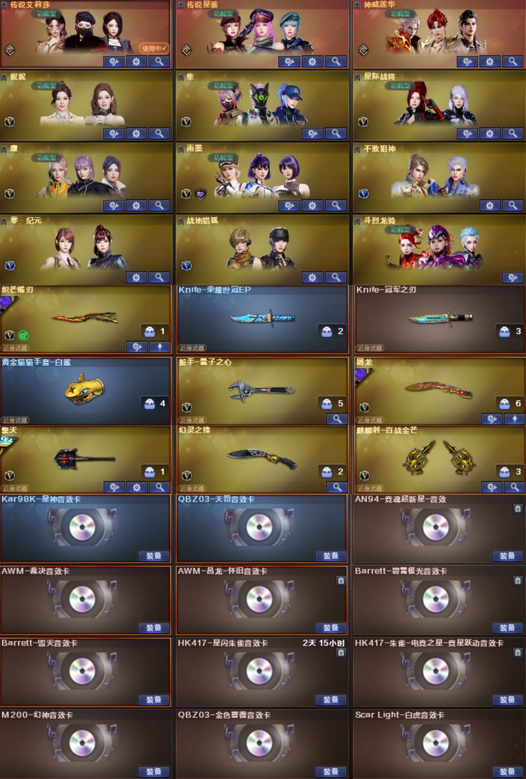 限制: 撤单率<80%才可租用此帐号装备描述:开挂必被抓,平台都有扫脸以及身份信息。我们公司有专门法务团队,如果租客一旦违规导致十年,我们一定上门报警并起诉追究到底,莫有侥幸心理伸手必被抓!幻影+音效卡【神威莲华-星骇-艾莉莎-圣谕-破晓】【幻神-权-周瑜-YZK-宠儿-冠军之幻-KZ-AG24-传奇欧欧-白鲨2023-AG17-CFS2022-幻神音效卡】【星神-AG冠军-巅峰荣耀-星神音效卡】【裁决-裁决音效卡-巅峰荣耀-流光秘银-叶芒苍灵-典雅胡桃-量子聚变-运输船】【白虎-常旭-光海夜岚-白鲨-音效卡】【金色蔷薇-冠军之薇-破浪逐光-CFS2024-音效卡】【天袭-玄豹-天戎-幻影】【USP-雷暴王者*2】【USP-冥王】【柯尔特-冠军之特-EP-无冕之王】【COP*2】【炽芒蝶刃-巅峰荣耀】【冠军之刃*2】【妮妮-星际战将-鹰-雨墨-隼】