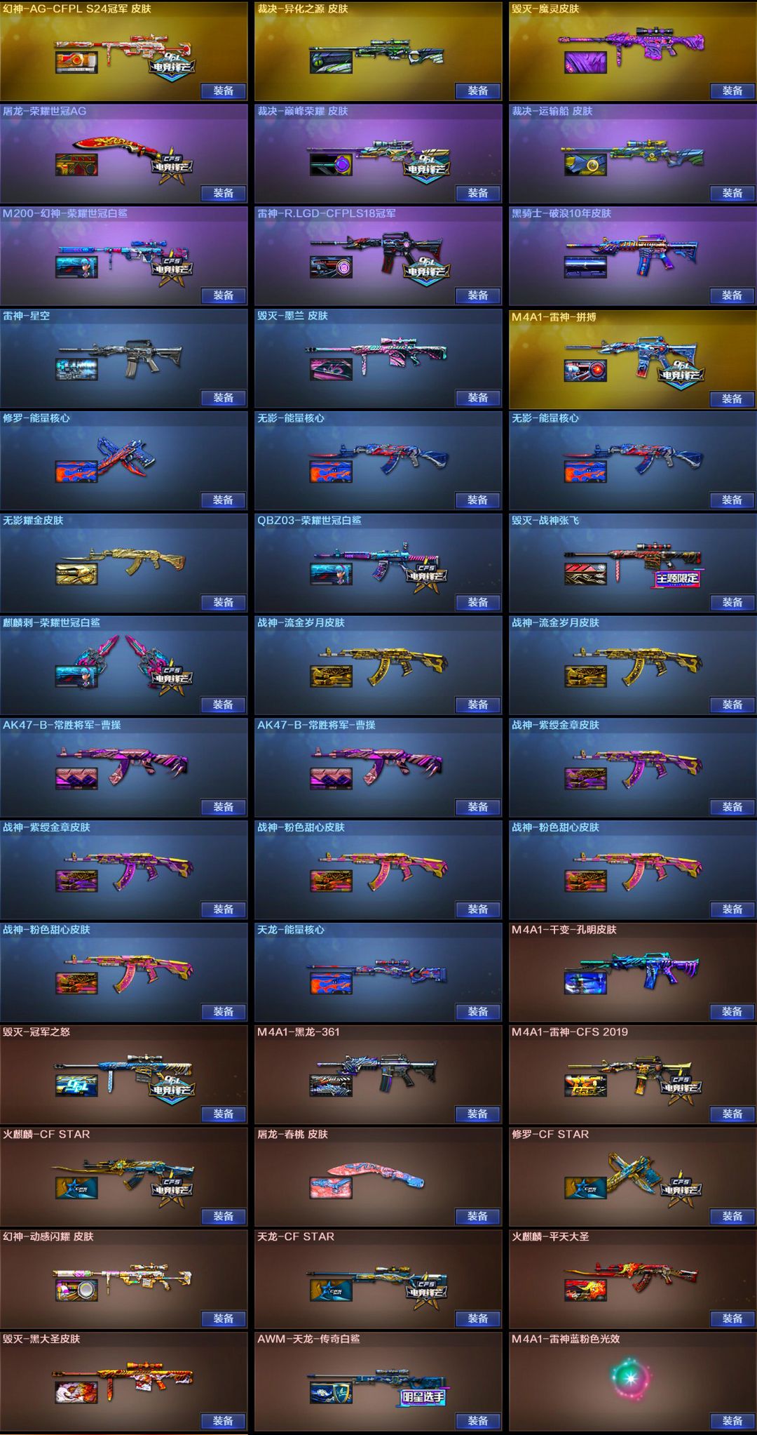限制: 租号5次及以上 |装备描述:【装备道具】:传说星骇/传说圣谕★幻神-动感闪耀 皮肤/幻神-AG-CFPL S24冠军 皮肤/M200-幻神-荣耀世冠白鲨/毁灭-冠军之怒/裁决-运输船 皮肤/裁决-异化之源 皮肤/裁决-巅峰荣耀 皮肤/M4A1-雷神-拼搏/雷神-R.LGD-CFPLS18冠军/M4A1-雷神-CFS 2019/雷神-星空/QBZ03-荣耀世冠白鲨/麒麟刺-荣耀世冠白鲨/屠龙-荣耀世冠AG/屠龙-春桃★SCAR Light-玄豹★FAMAS G2-天戎/炼狱-百战金芒/USP-冥王3把/Anaconda-玄豹/炽芒蝶刃/QBZ03-金色蔷薇/白虎-电玩蓝兔/COP-堕天神/★异变清道夫-蛇影双骄/斯泰尔-蝴蝶/U★M200-幻神/王者凌虎/王者玄武/王者森力/王者之霆/USP-雷暴王者/王者玉锋/王者冰锋/玄豹套装★雨棠/魅影/乔伊教练/空/潘多拉-X/兔囡囡/潘多拉★M200-幻神音效卡/AWM-裁决音效卡/M4A1-雷神音效卡/Barrett-毁灭音效卡/M4A1-黑骑士音效卡★生化弹夹防化服变异宝贝死亡之眼★佣兵觉醒手斧镜减速雷★捕食者之眼死亡之眼超级对讲机不退包★超级背包无需换弹查看血量★