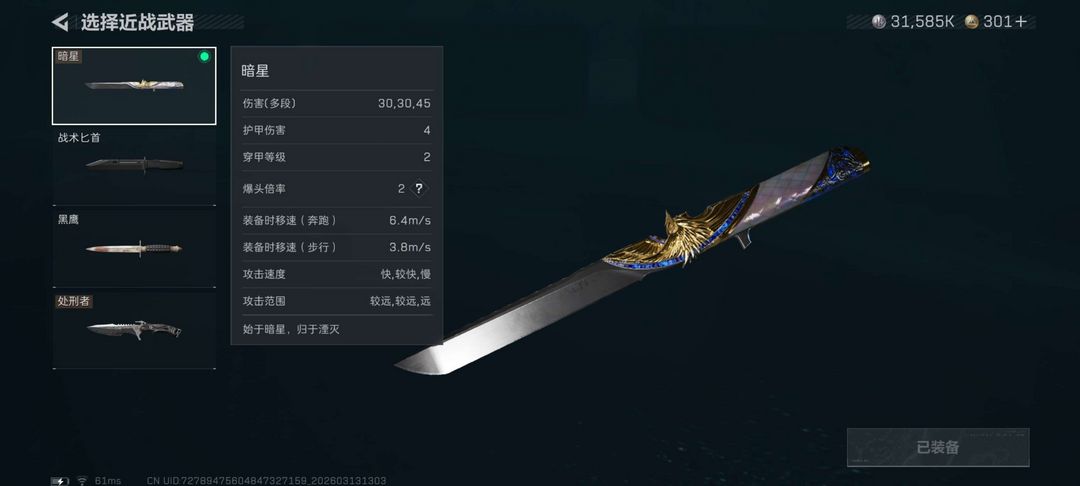 装备描述:纯币1亿+满体+3*3好刀(暗星,处刑者)高爆号解锁老赛(护航猛攻必备严禁开挂)