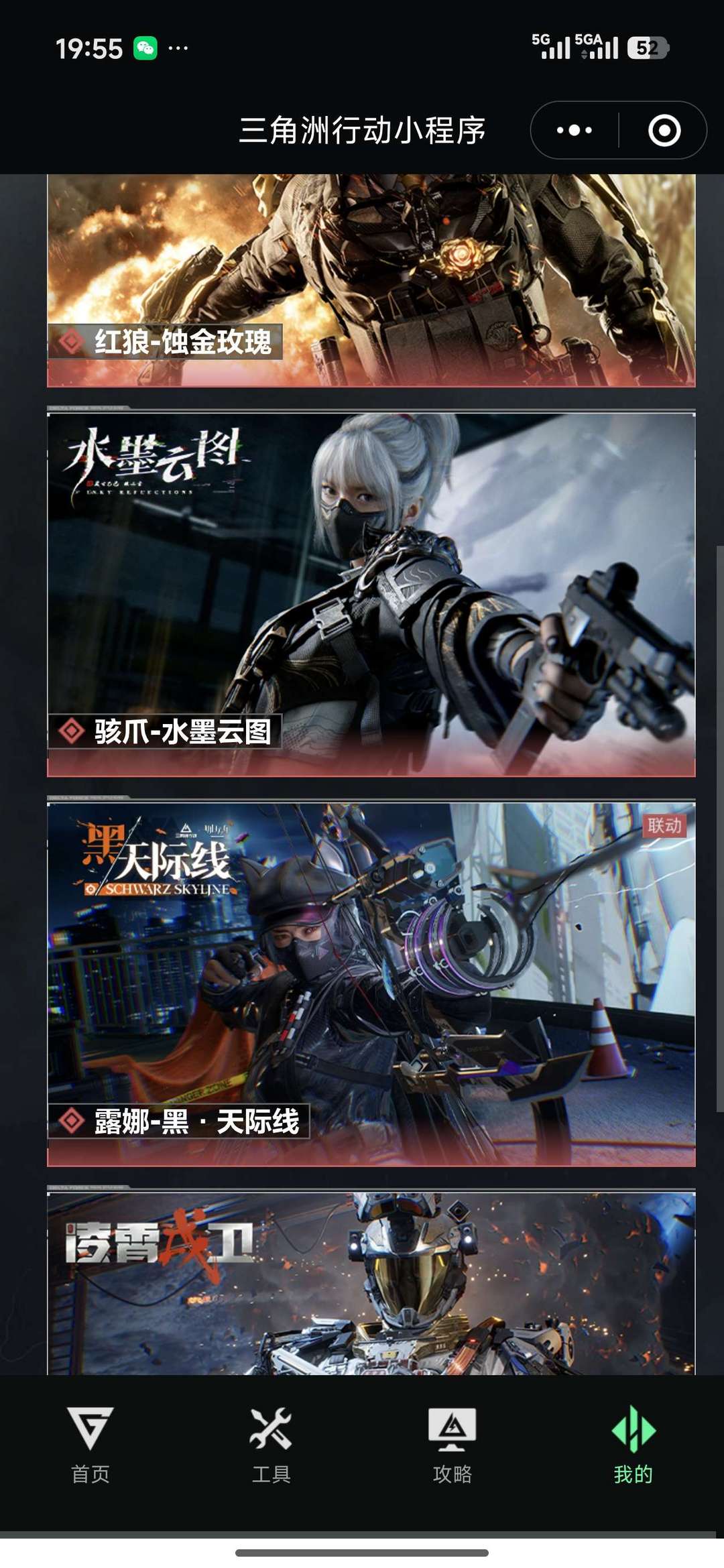 装备描述:红狼-蚀金玫瑰 骇爪-水墨云图 露娜-黑·天际线 威龙-凌霄戍卫 无名-夜鹰 蜂医-送葬人·无题密令 深蓝-不破誓约 露娜-金牌射手 蛊-不羁人生 处刑者 暗星 黑鹰