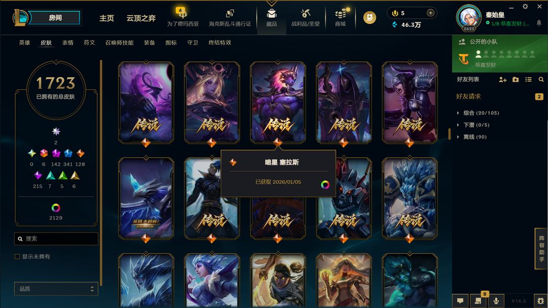 黑莓1768原皮+2782炫彩无虚报如图可排位⚡全至臻神话⚡最新踏雪龙马更新⚡四色龙虾⚡双修云顶