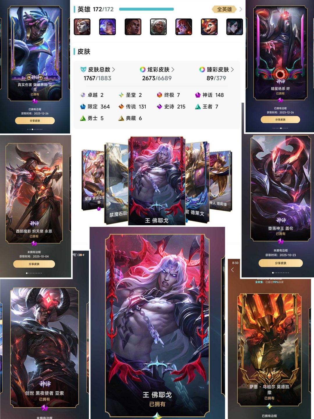 艾欧尼亚1780原皮可排位圣堂王佛耶戈铁男海魔至尊剑魔神话幻想炽天使永恩创世亚索云顶25神话