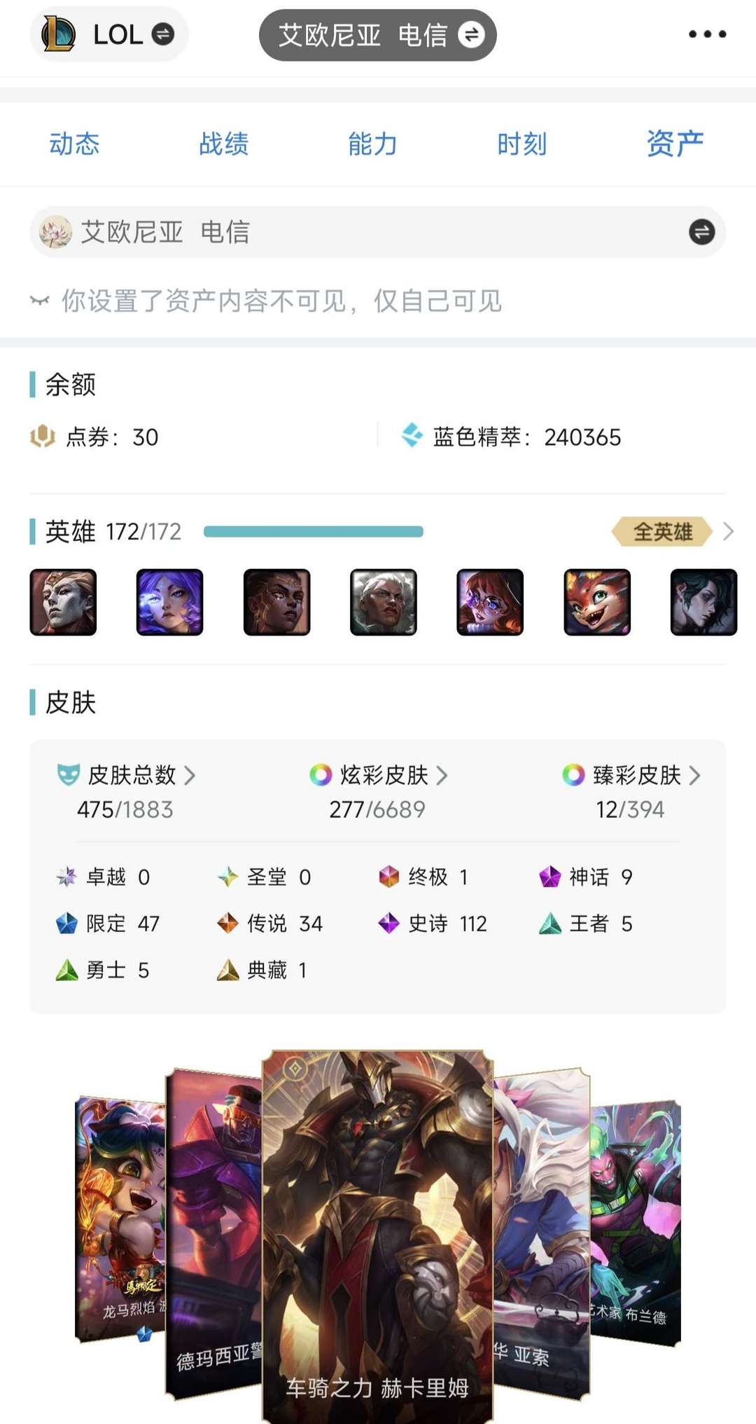 全英雄❤️475p❤️多上单英雄皮肤 艾欧尼亚可排 龙鸡猪年与冠军限定