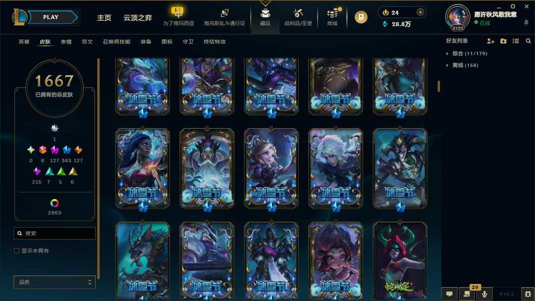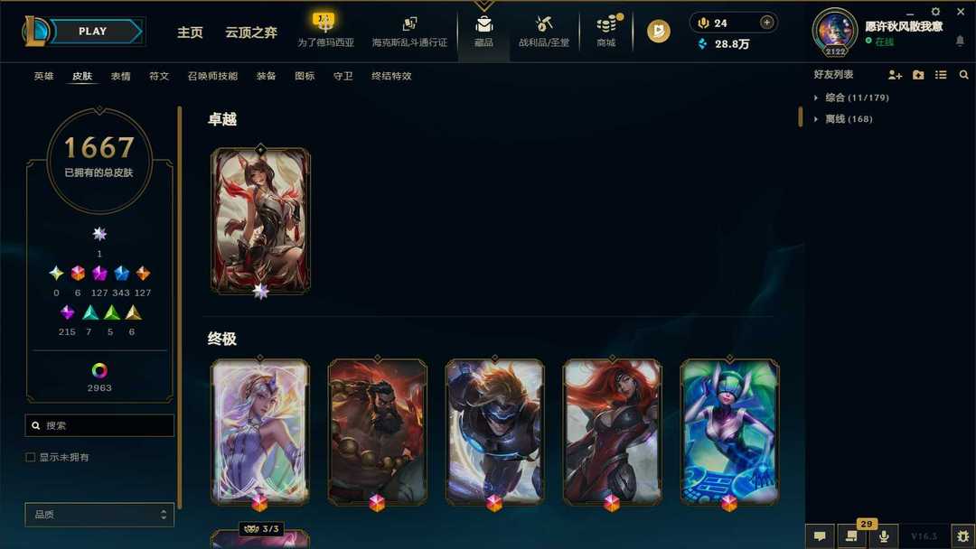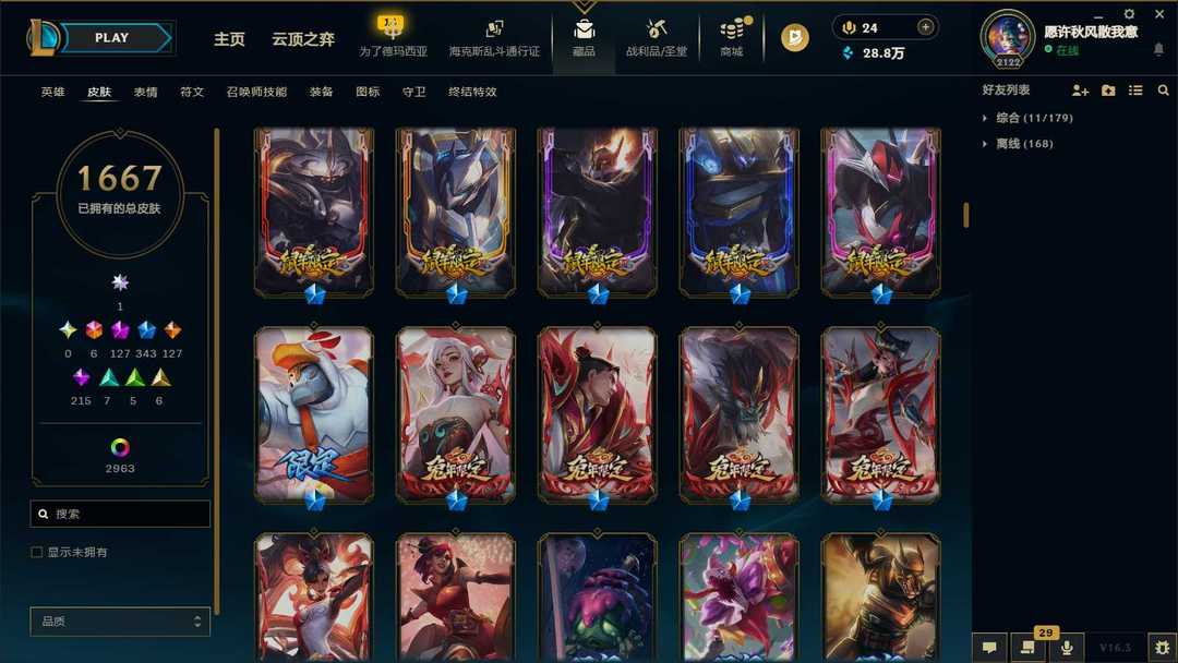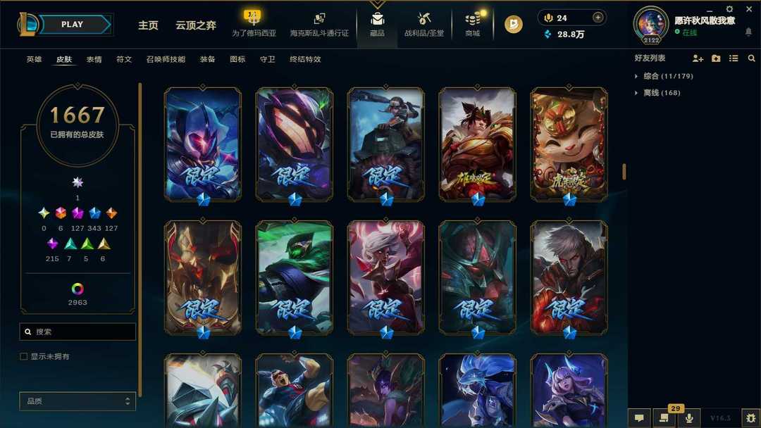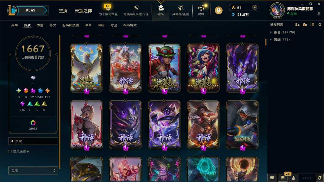 【泡泡】4600皮♥1668原皮♥2963炫彩♥128神话♥115臻彩♥♥343限定♥双神话幻想♥♥