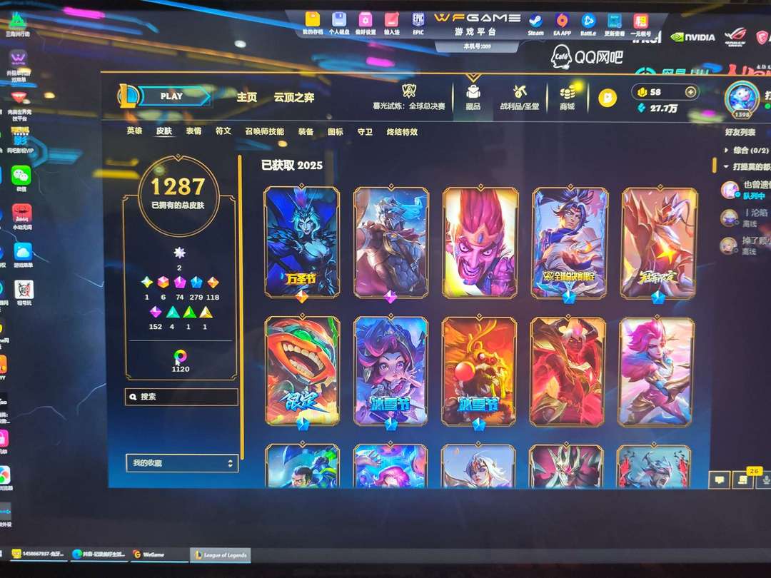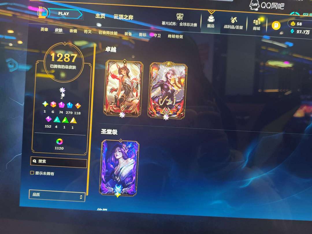 一共1287个皮肤 臻彩104炫彩1120有uzi的名人堂全特效 狐狸的名人堂普通的