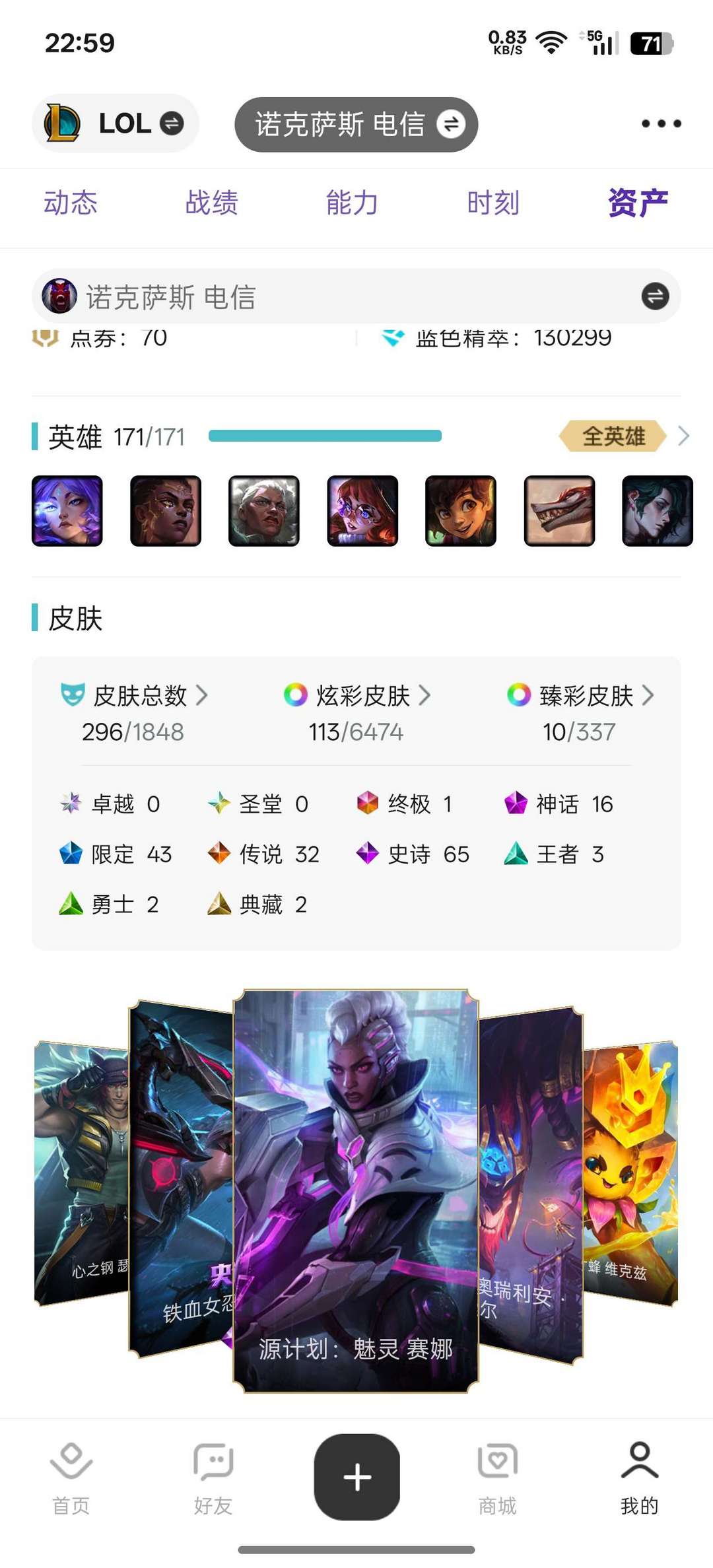 诺克萨斯300个皮肤1终极,16神话,30多传说手感皮肤,其余手感皮肤基本都有