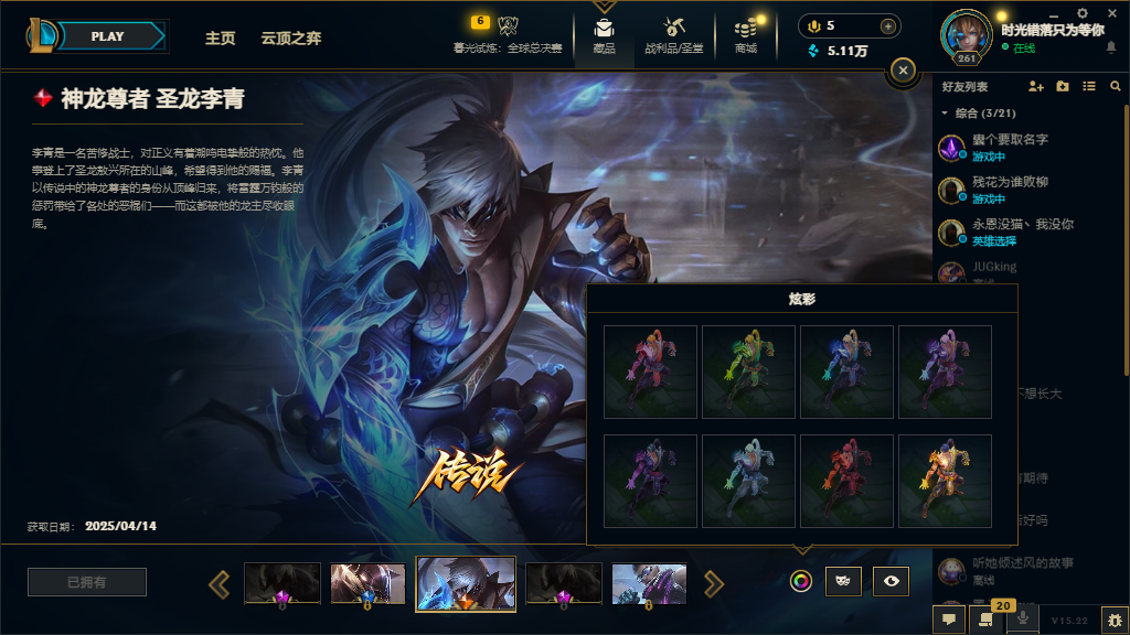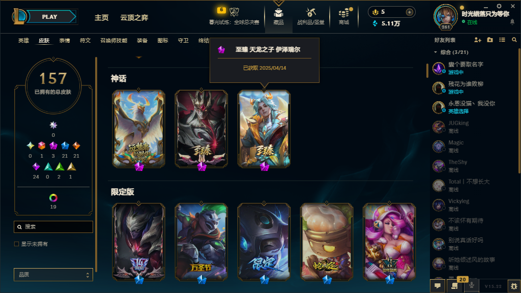 【艾欧尼亚】单双白银段位至臻天龙之子EZ剪纸仙灵嘉文青花瓷EZ灵魂莲花瑟提⚡神龙李青➕金色臻彩