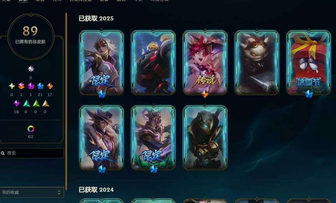 艾欧尼亚单双排翡翠4,灵活组排青铜,皮肤89