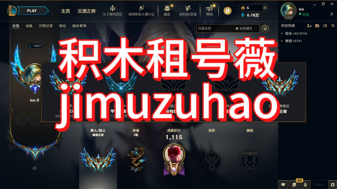 【积木租号】【黑色玫瑰】【S16最强王者千分】★3000p★创世黑夜亚索★上不去号想打字打灵活找客服