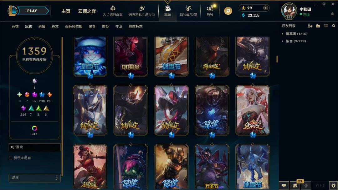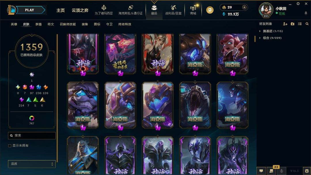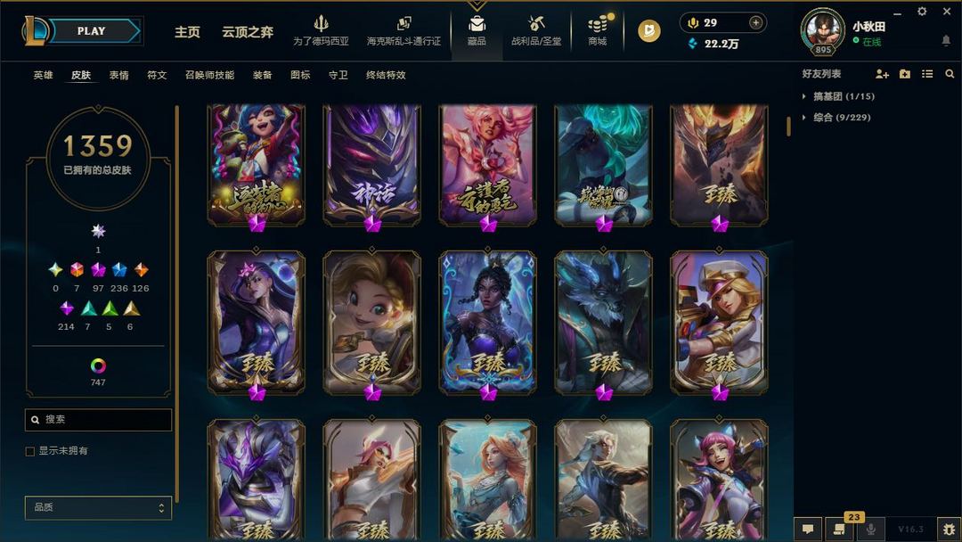 【LOL大王】2100P乄1359原皮乄747炫彩乄37臻彩乄100神话乄殿堂阿狸乄暗星绝杀烬
