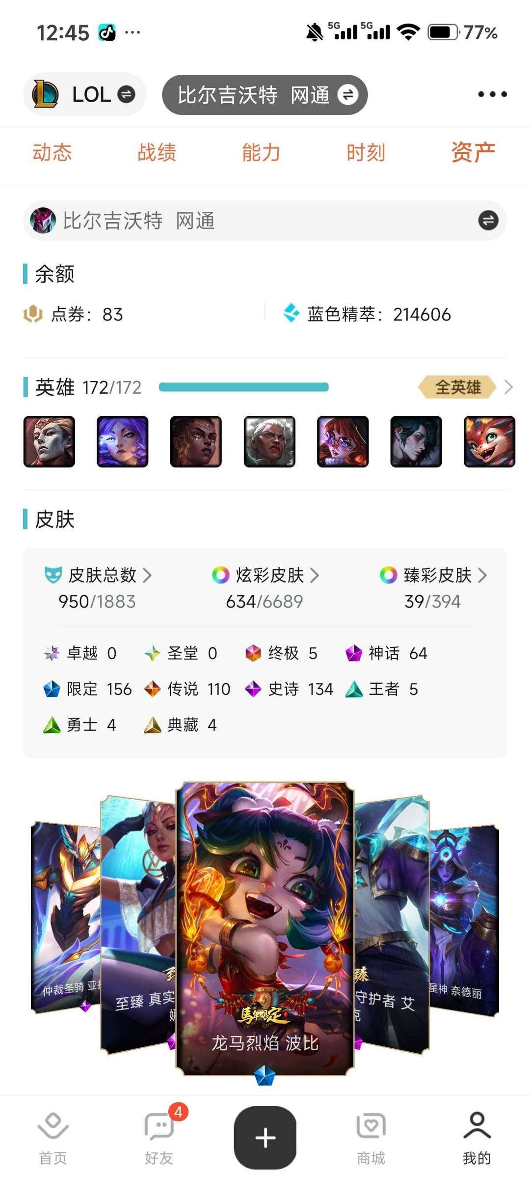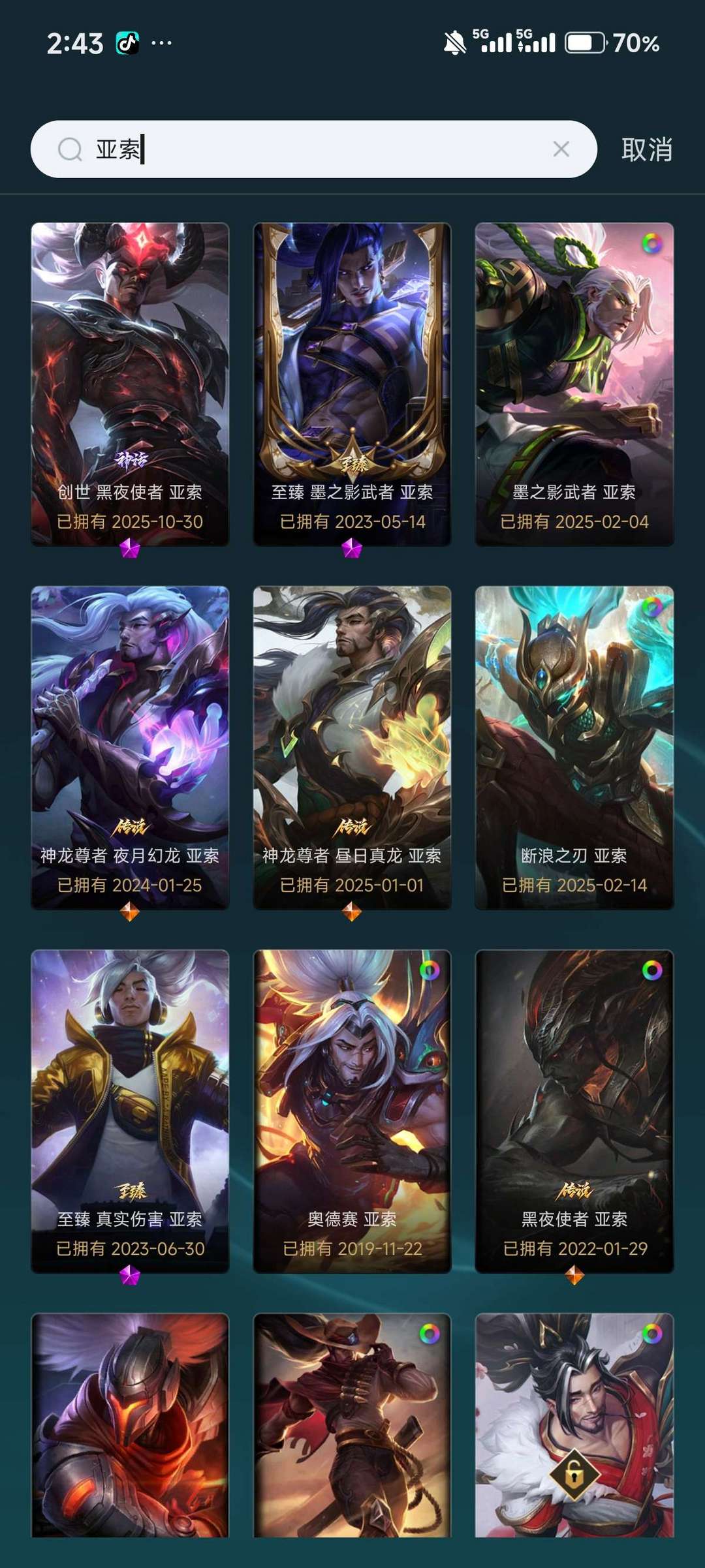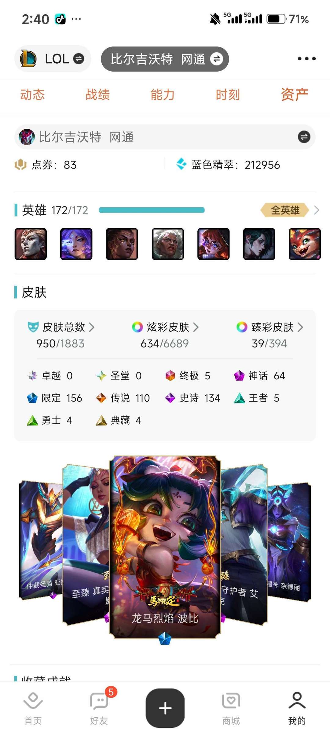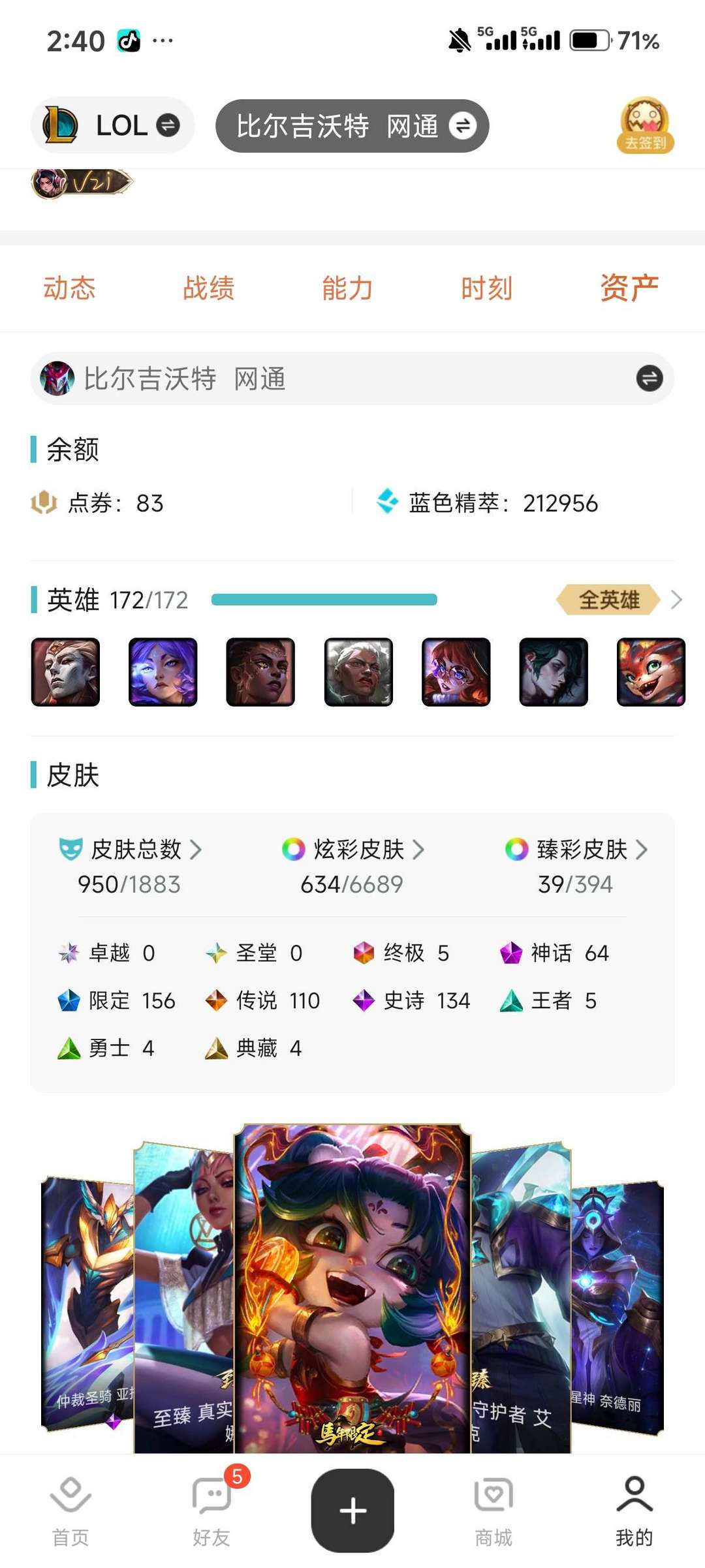 900 多个皮肤,亚索,永恩的神话,还有一堆臻彩,自己看吧,~(¯▽¯~),经济实惠