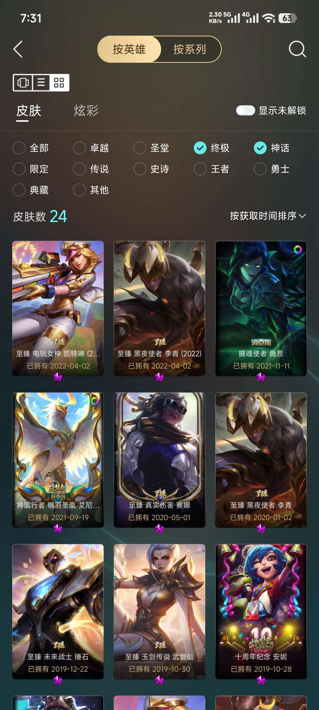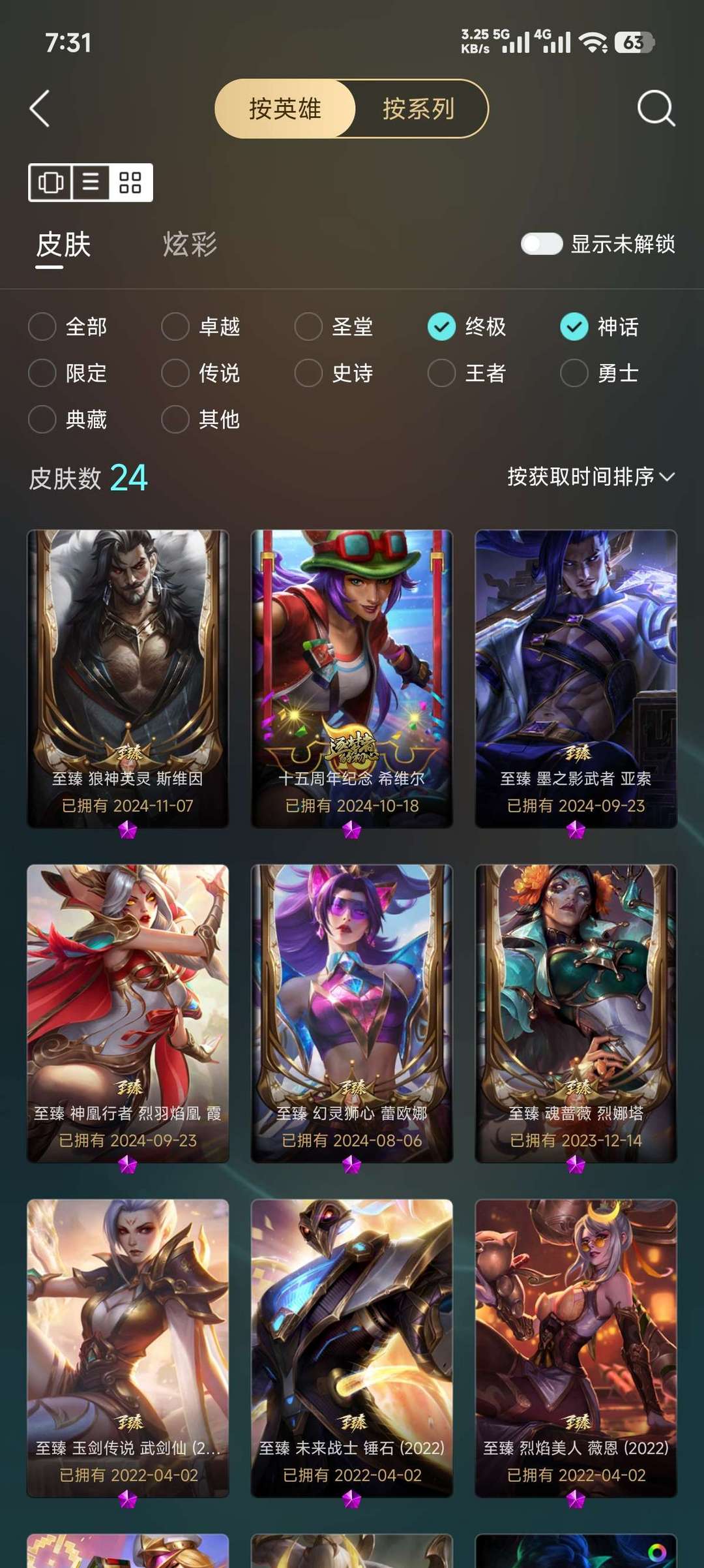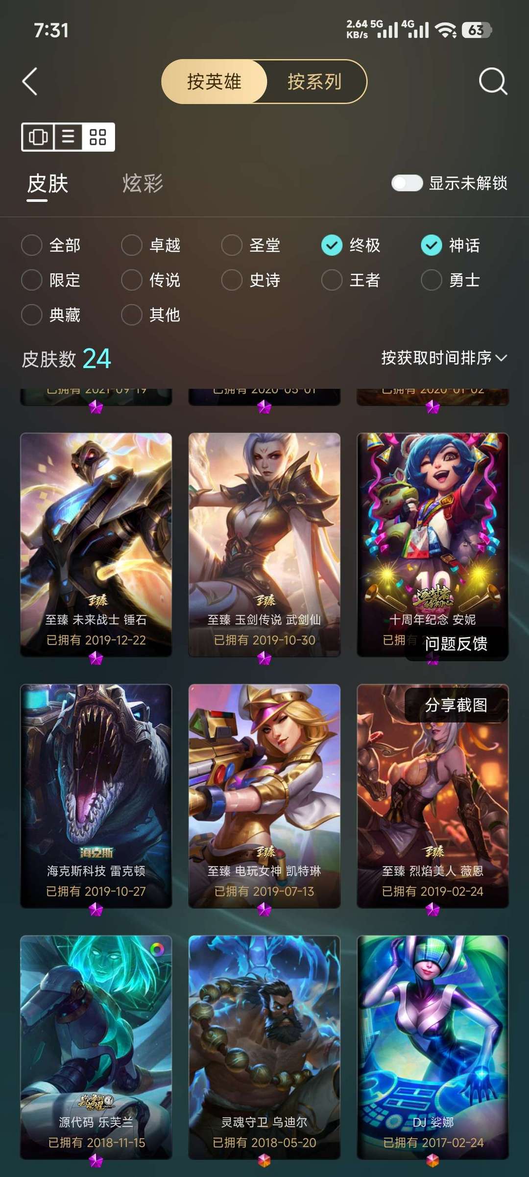 836皮、摄魂VN、龙刀、花木兰、神话22、可排位。