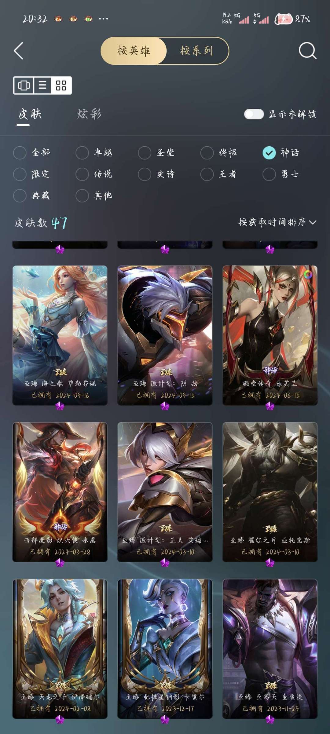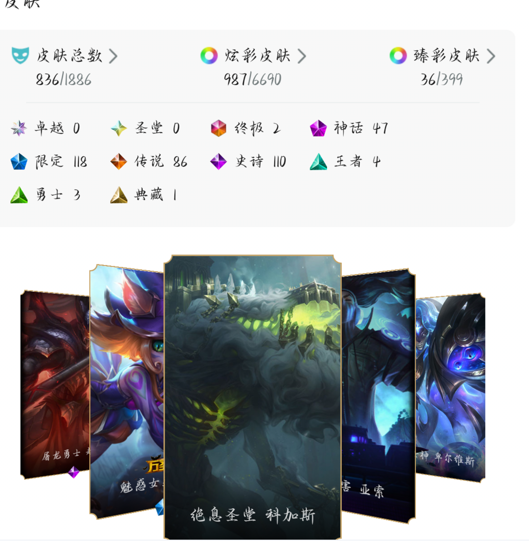 神话幻想永恩☆原皮836☆炫彩987☆臻彩36☆传说86☆神话47限定118☆终极2