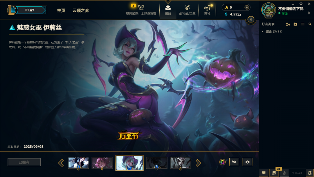 全英雄黄金可排位妹子号海之歌艾希万圣节露露伊莉丝幻灵战队女枪暗星锤石源计划猩红亚索花仙贵族EZ冰雪节