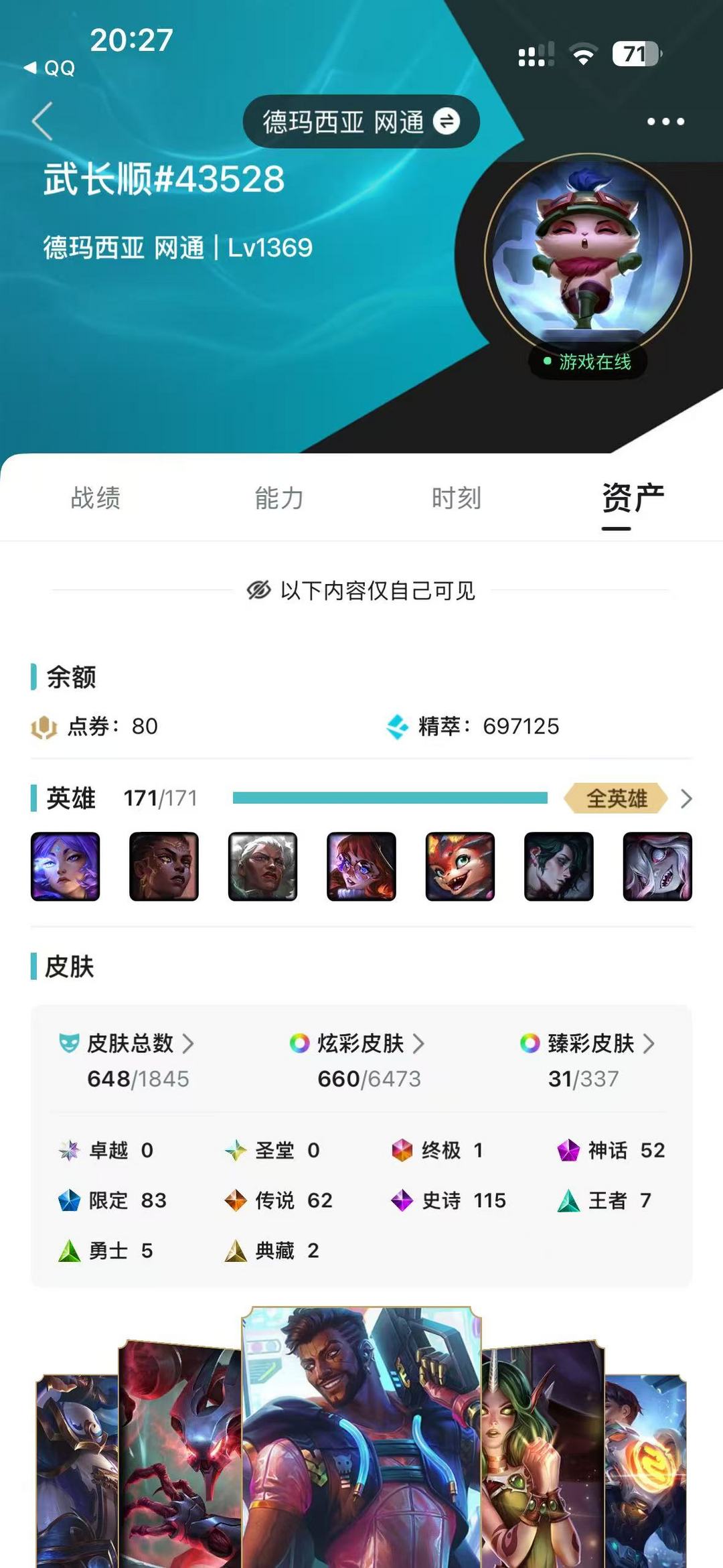 限制: 撤单率<50%才可租用此帐号英雄: 171