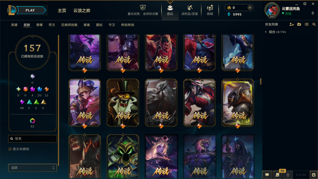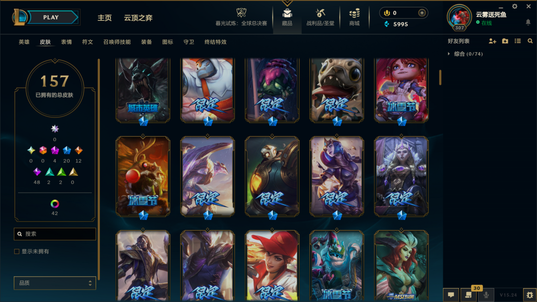 段位准█400皮肤〓10至臻海克斯〓神王枪骑〓全胜利系列