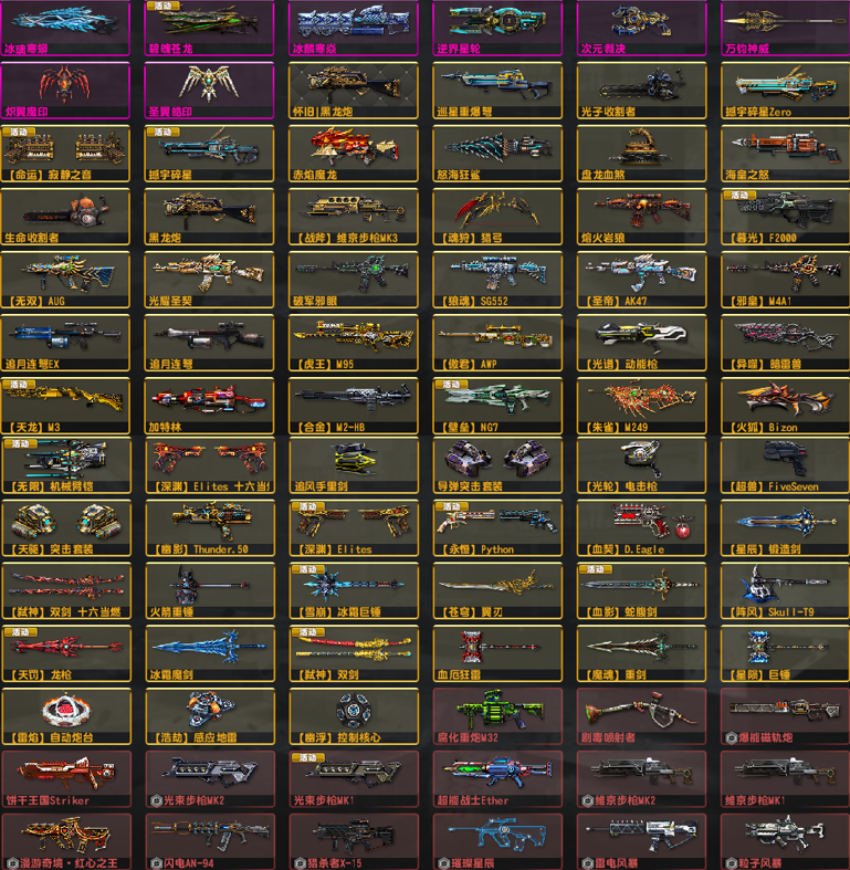 蛇舞哥●特典火狐●龙蛇神万钧神威次元天使恶魔雷4四件套●光束套维京套双闪电●虎神冰鼠●去雾
