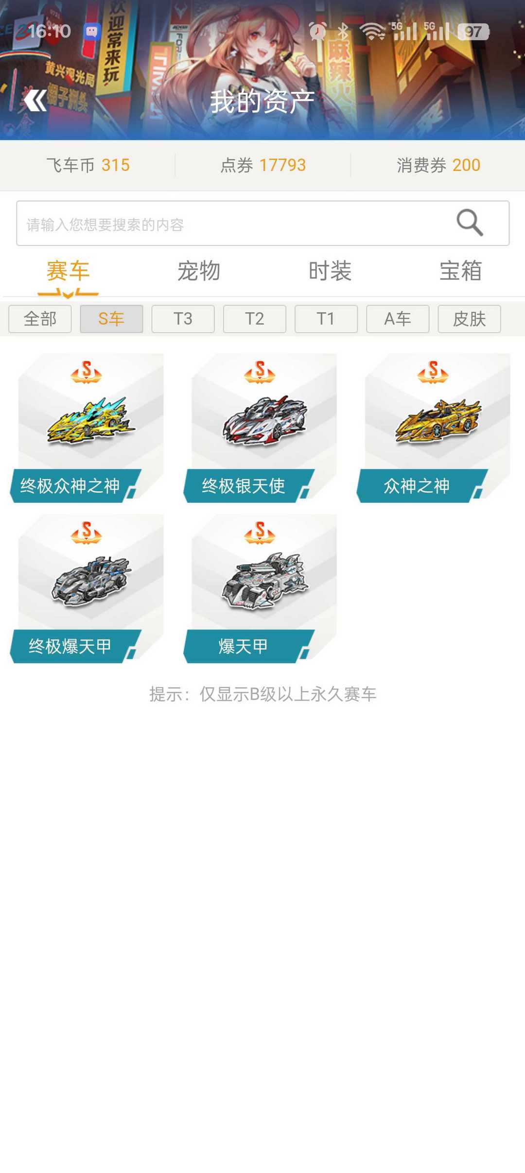 装备描述:性价比超高! 所有车都是全29满改 宠物神笔牛牛+10 各种ssc冠军背景 3次登不上就是登录异常失效 直接撤单就行