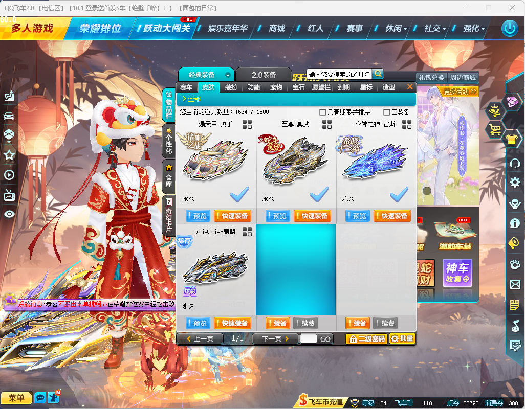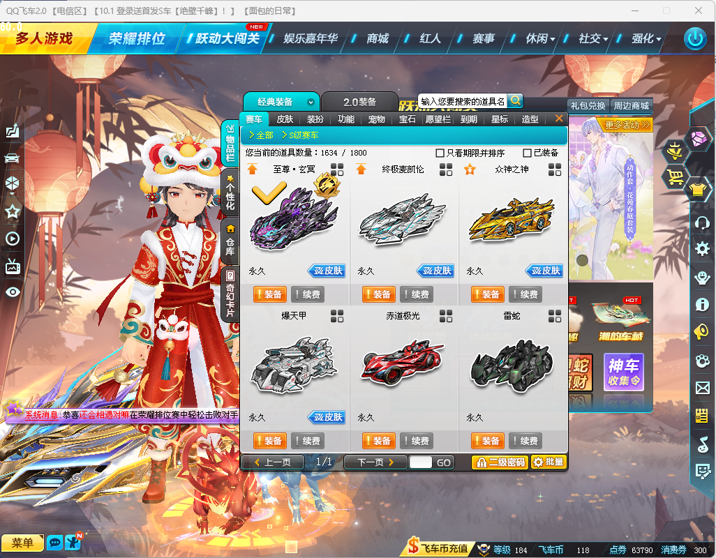 游戏区服:QQ飞车-电信-电信