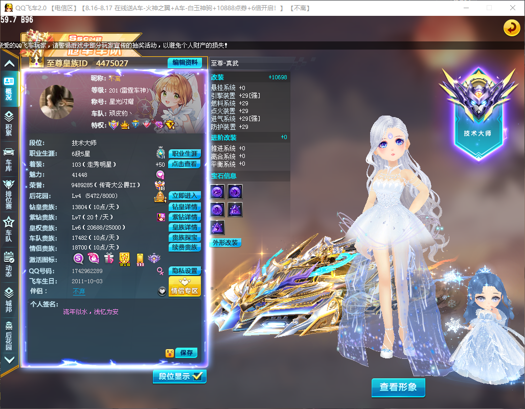 装备描述:满改至尊真武/满改终极众神之神-吕布/满改雷诺/满改超时空穿梭者/雪凝公主+10/喜羊羊+10
