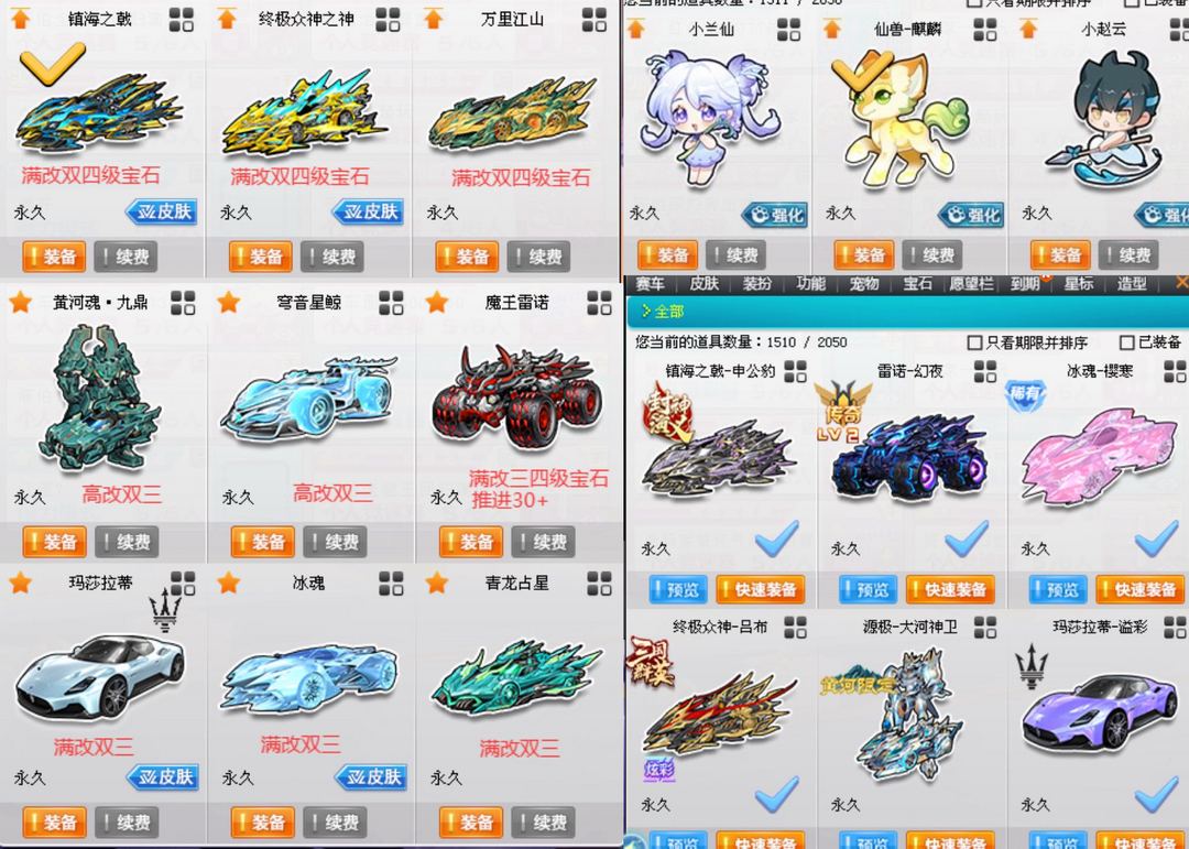 装备描述:【宠物】小赵云+10,仙兽麒麟+8,小兰仙+8【3S全部满改双四】镇海之戟申公豹,终极众神吕布,万里江山【顶级A】魔王雷诺满29三四推进31【顶级A满改双三】冰魄樱寒,青龙占星,玛莎拉蒂溢彩,穹音星鲸等【1T高改双三】黄河魂·九鼎,【衣服】超多悬浮动作套装【请注意】本号魅力值2.5万,认证虚拟资产,禁止利用账号进行开挂、使用辅助违规软件诈骗等违规操作。毁号行为涉及毁坏虚拟财产罪及计算机安全罪,请文明游戏素质游戏,让我们共建美好租号平台!