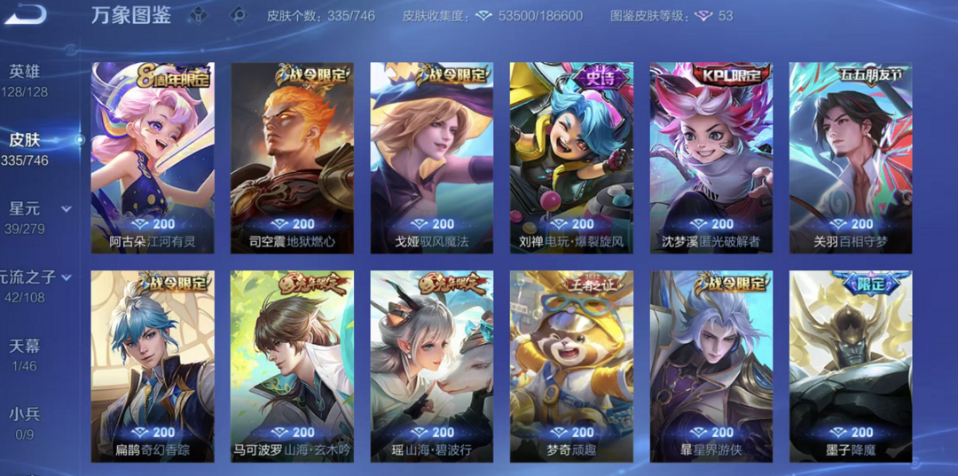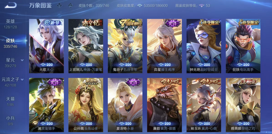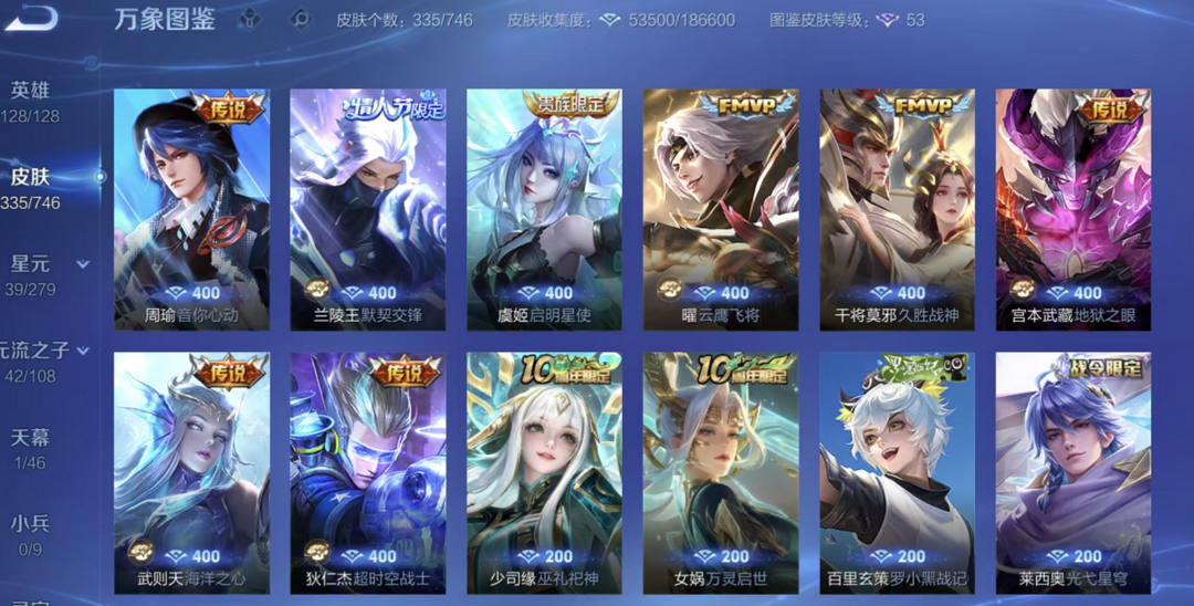1折包天✨十二月在榜省金牌米莱迪中路62段✨小乔无双时之魔女✨鲁班典藏星空梦想✨蛇年女娲蔡文姬司空震