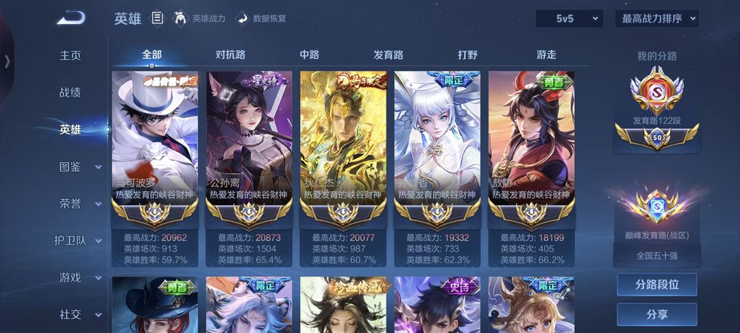2月正式服在榜五十强122段发育路⭐13国服发育路⭐v10满皮⭐马年限定全皮已补⭐可排位