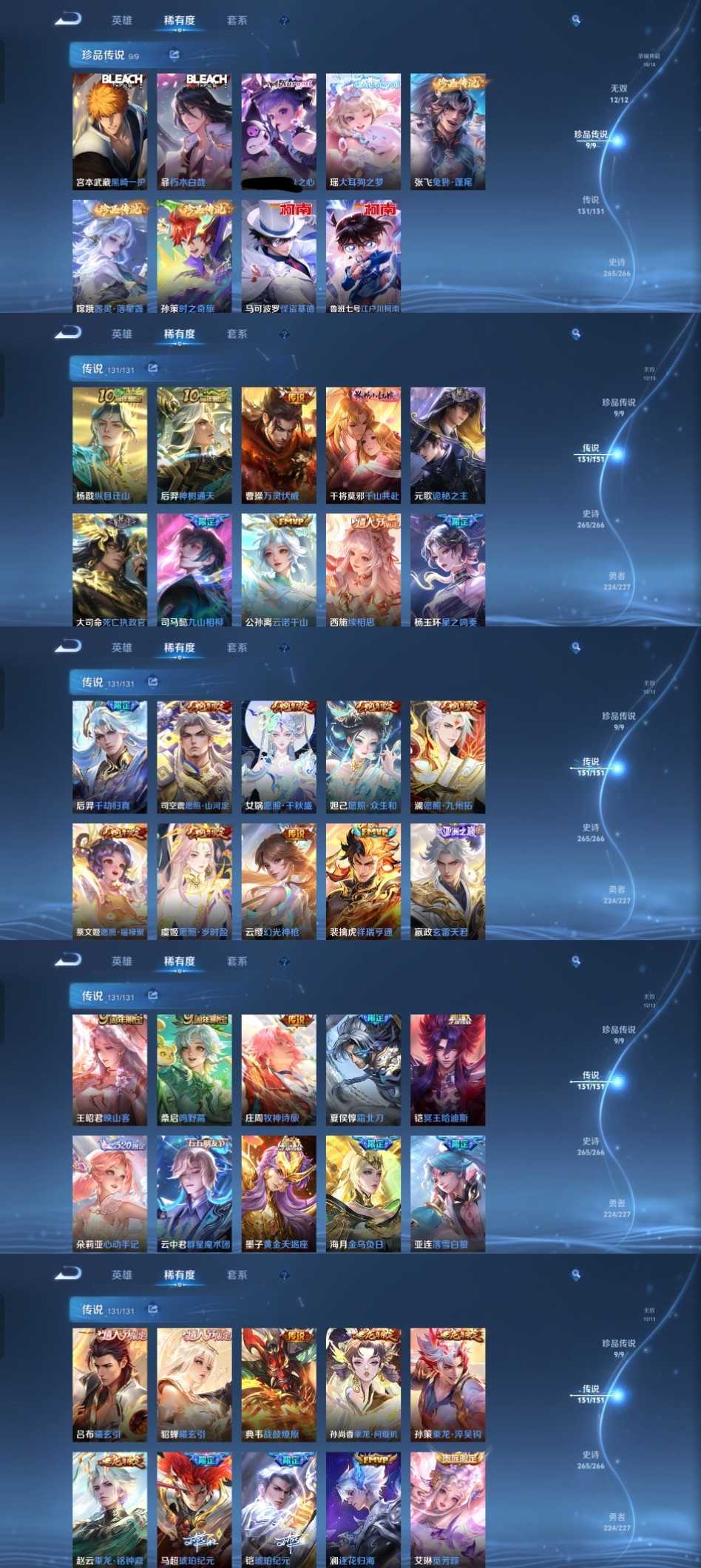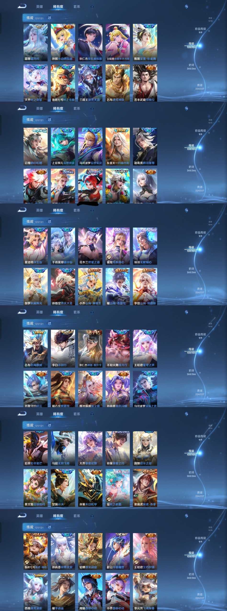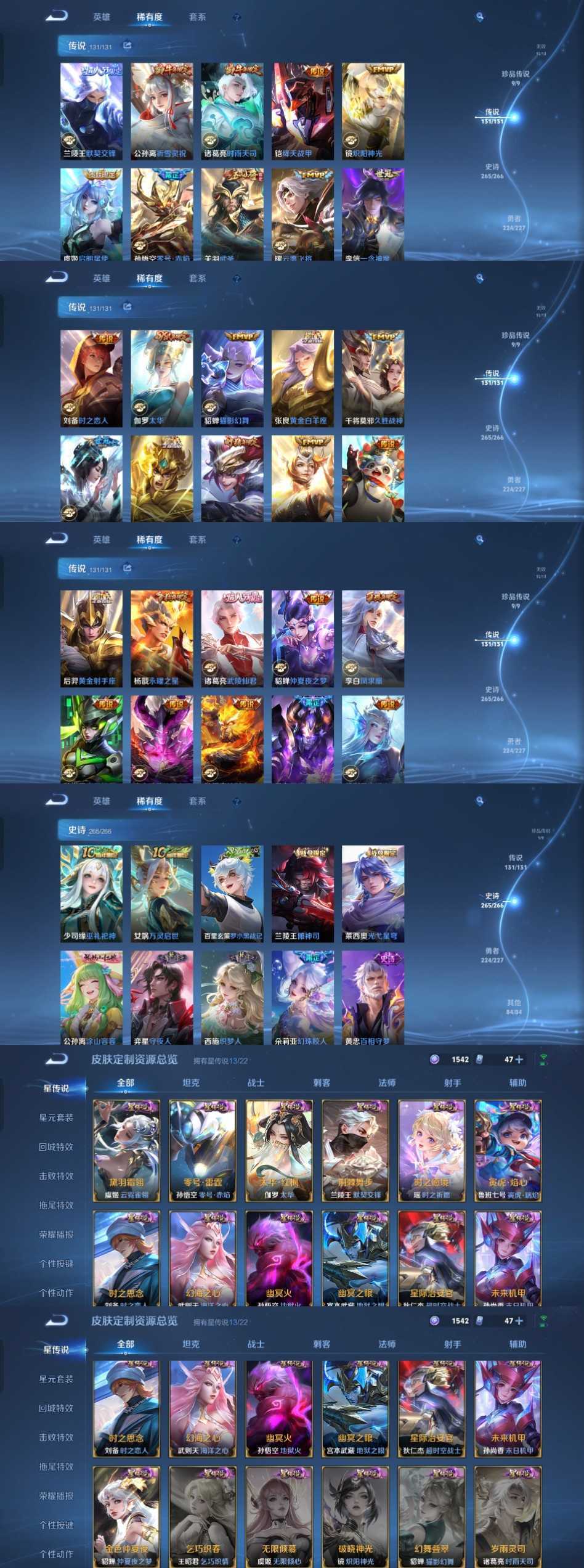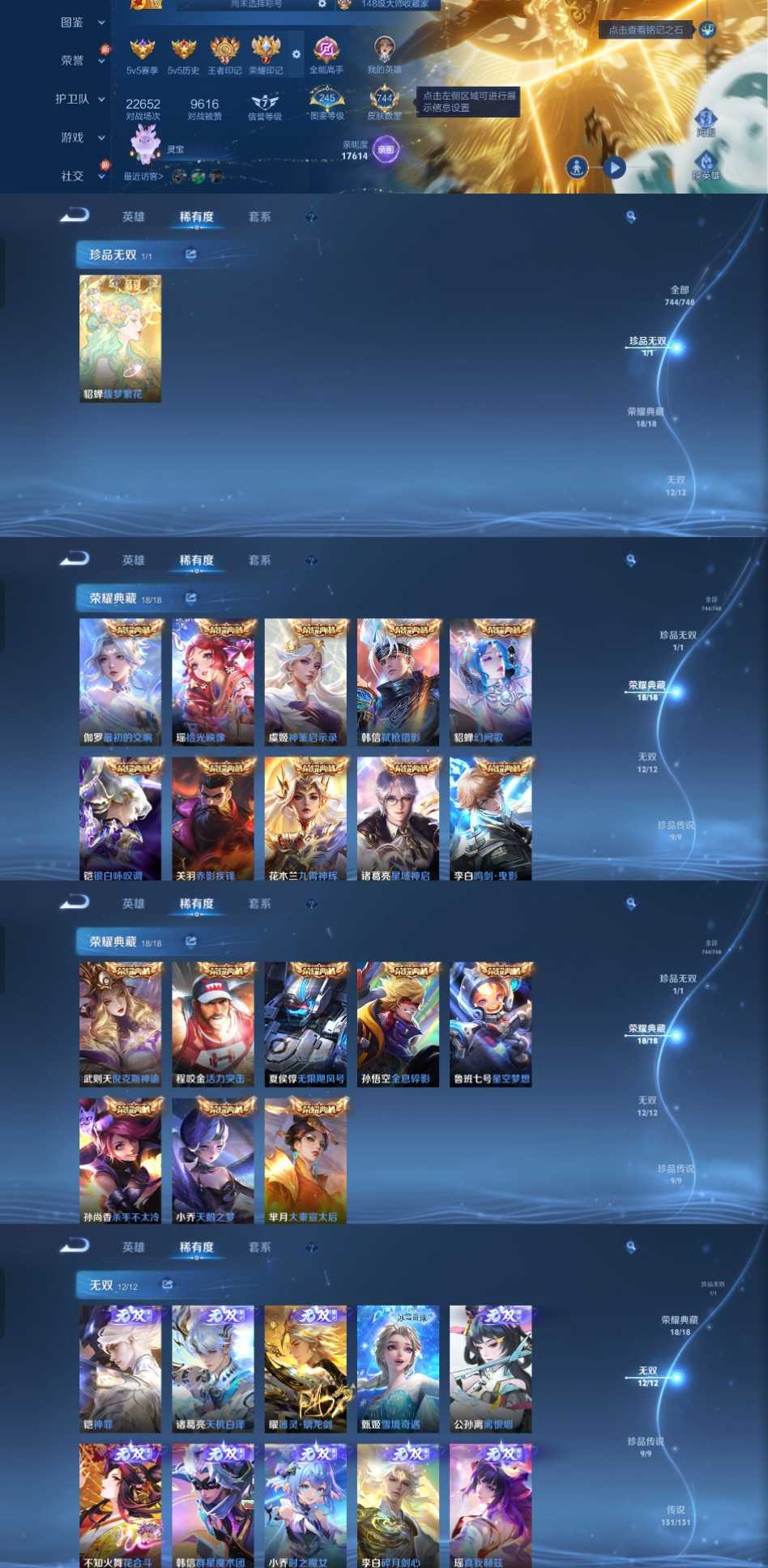 伪满皮肤缺3满✨20典藏全无双全珍品全传说✨全十周年神罪✨千山共赴诡秘之主✨死亡执政官天机白泽