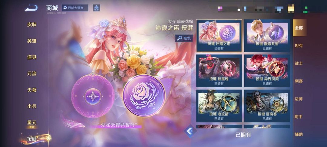 装备描述:请素质游戏!谢谢 此号出所有游戏皮肤道具都会秒补,喜欢的老铁记得收藏不迷路哦,满荣耀典藏,满星传说,满天幕,满按键皮肤,KOC金框,银框,神豪撩妹必备 请游戏局内保持文明,防止禁言影响他人游戏,祝您玩得愉快! 点击左下角进入店铺。店铺有各种类型号选择。祝大家游戏愉快 三分路段,67段发育路,62段打野,59段中路。