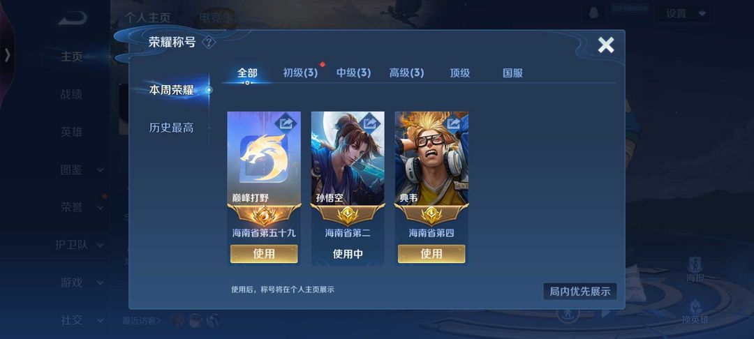 游戏区服:王者荣耀-QQ安卓-QQ账号 -手Q268区-先知奇谋