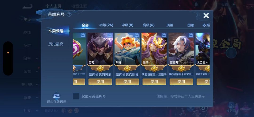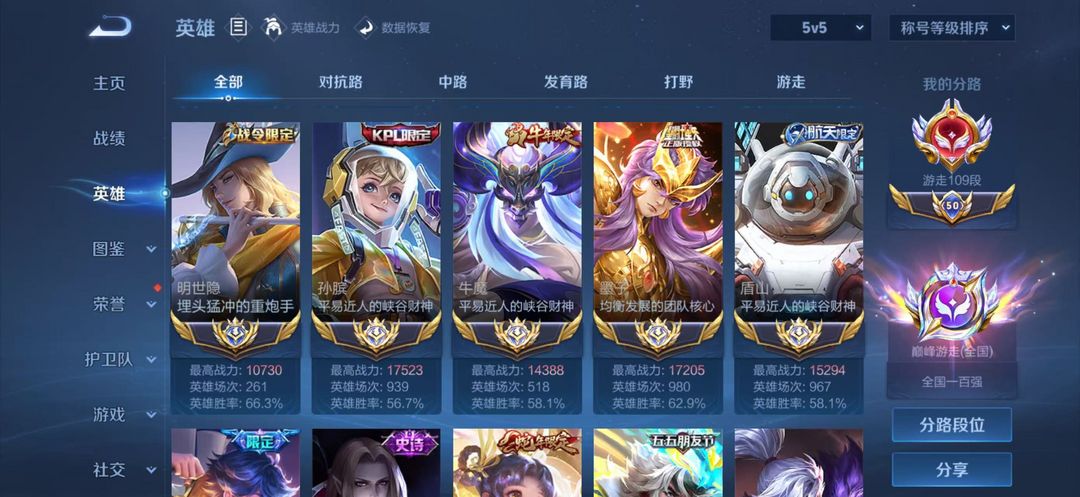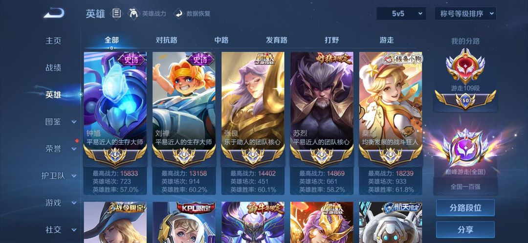巅峰万强游走⭐2月正式服在榜⑥省标苏烈刘禅空空儿⭐109段全国职业logo十国服游走⭐可排位禁巅峰