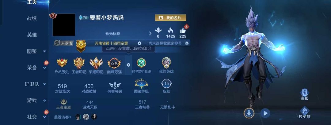 游戏区服:王者荣耀-QQ安卓-QQ账号 -手Q494区-南枝异客