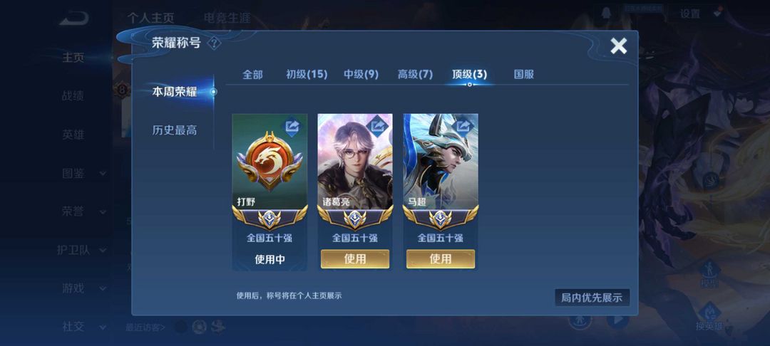 历史99段国标打野❤️历史1.7w国标暃镜 老虎 李白 露娜 澜诸葛 马超❤️巅峰万强⚡框❤️禁排位