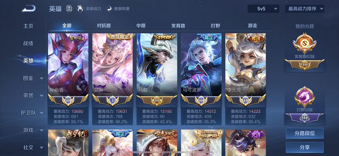 正式服在榜82段发育路⭐v10贵族皮肤共享⭐1.6w数字标艾琳香香⭐超多省级限定⭐可排位