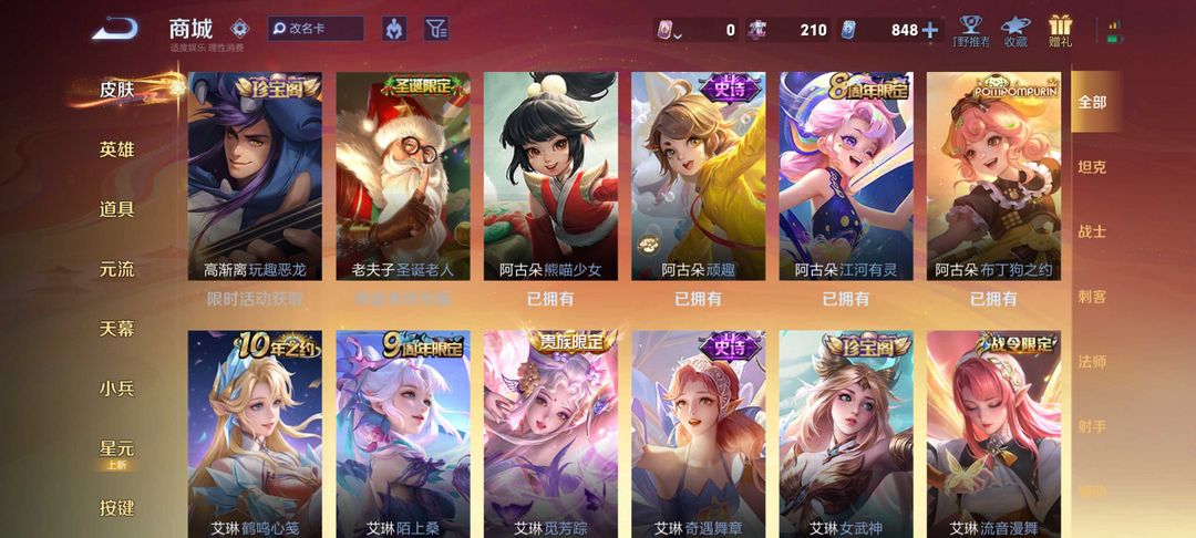 荣耀V10不禁言❤778皮历史三国服❤安琪拉-颠倒童话❤️李信-问剑心❤️满小兵满星元❤️满马年