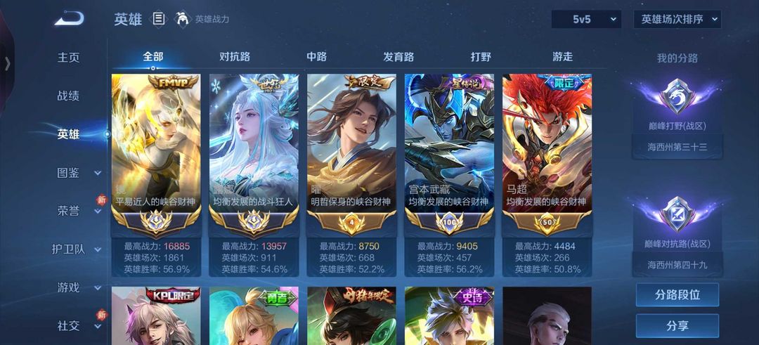 二月在榜省标镜露娜曜马超宫本哪吒❤️1w7战力❤️巅峰1k6历史国服镜露娜宫本哪吒马年限定