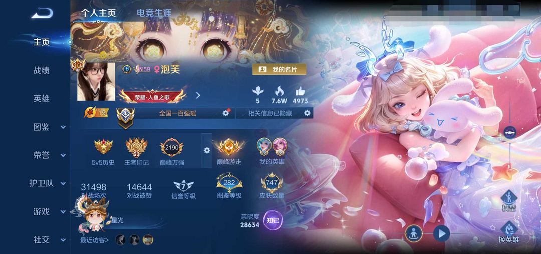 在榜小国瑶省朵莉亚❤️禁巅峰万强❤️746皮荣耀V10不禁言❤满水满无双新皮全满20星❤️5小兵