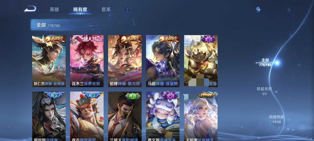 安琪拉典藏✨李信无双✨伽罗珍品✨马年情人节全套✨历史国服猴 国服阿轲✨无相✨李元芳累充皮肤