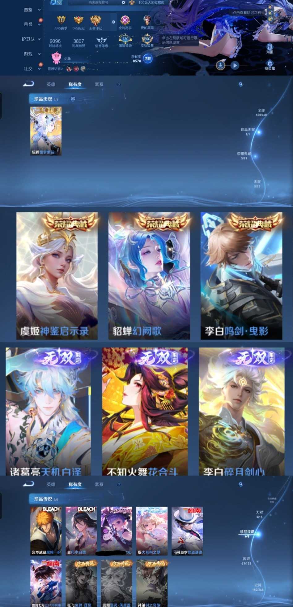限制: 租号2次及以上 |装备描述:时间到了还登录白玩或者顶号全部改密拉黑处理永不解除,顶号机器会秒禁玩改密,顶号不仅拉黑还没得玩,赚三两块不容易,请理解谢谢。 ❤❤❤❤❤❤❤❤❤❤❤❤ 请勿开挂,挂机,送头,骂人,撤单后游戏等如有违规永久拉黑永不解除。 重置二级密码不要费劲了,号主每天都会上号查看,多行不义必自毙,人在做天在看,多做好事多自律,少做缺德事 该号英雄128个皮肤500个,珍品无双1个,典藏3个,无双3个,珍品传说6个,星传说5个,传说61个,史诗152个,祝你游戏愉快~