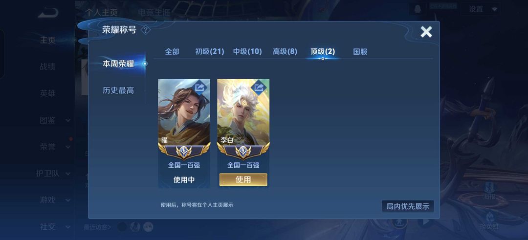 只能无限乱斗本周在榜小国标李白曜❤️巅峰1800❤️72段打野历史国服曜孙策铠马可❤️