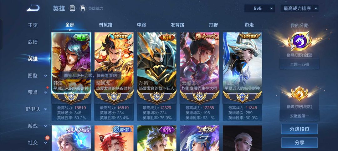 抢先服二月国服在榜最强云缨❤️带妹必备禁巅峰历史国服韩信老虎孙策2354