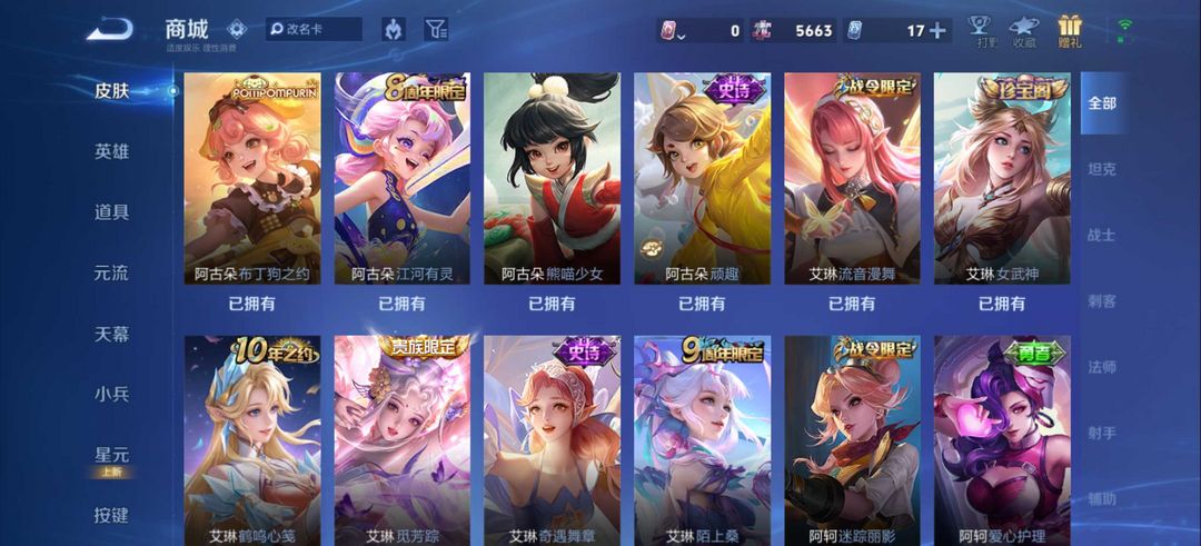 784皮纯满皮肤❤️无双V10不禁言❤满水晶23星元❤安琪拉典藏颠倒童话魔镜/李信无双问心剑