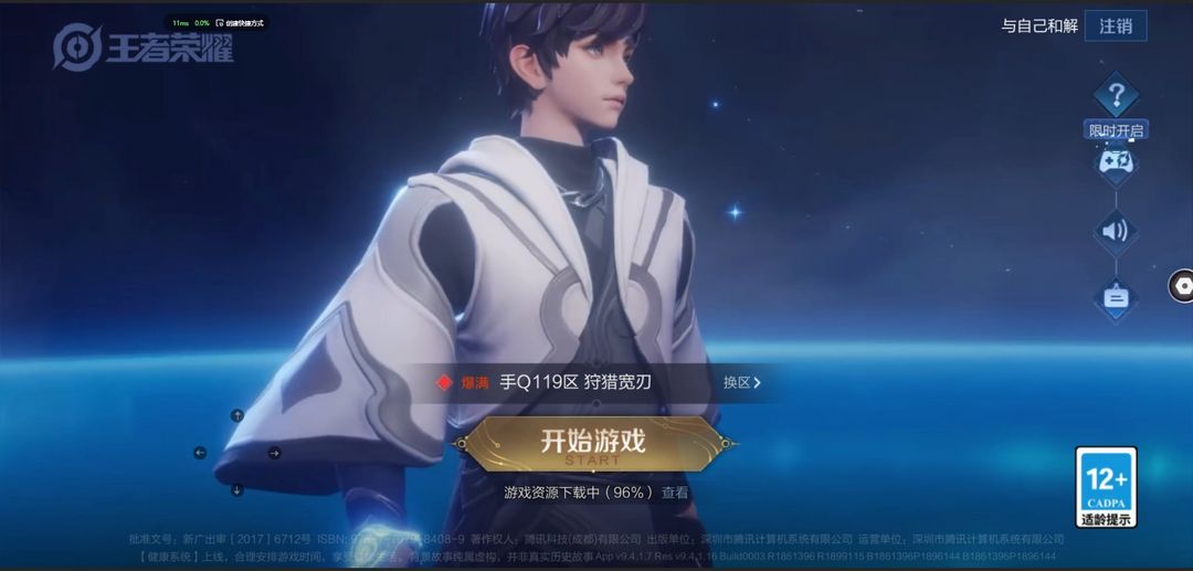 游戏区服:王者荣耀-QQ安卓-QQ账号 -手Q119区-狩猎宽刃