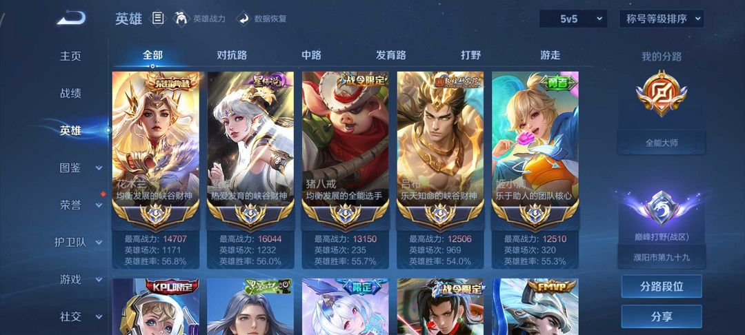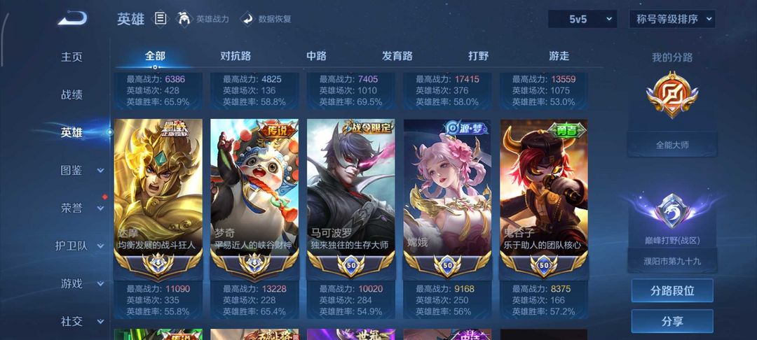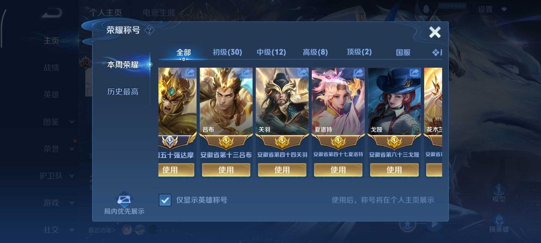 本周在榜国服50强达摩省标吕布关羽夏洛特花木兰⭐85段国服对抗路⭐历史十二个大国标极品大帅号