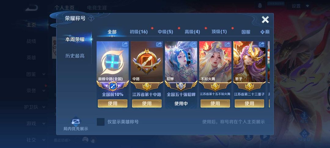 本周在榜省标貂蝉火舞墨子❤️76段国服中路❤️66段打野❤️7国服沈梦溪干将雅典娜嬴政